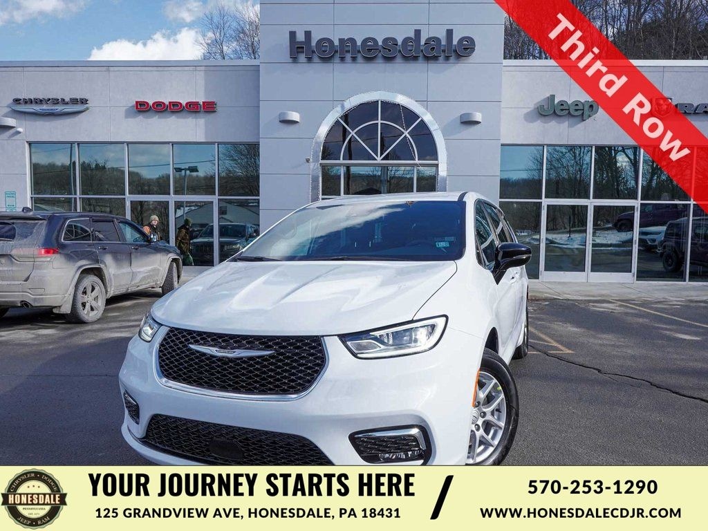 BLUE TOOTH, NAVIGATION, ALLOY WHEELS, LEATHER, BACK UP CAMERA, Pacifica Select, 4D Passenger Van, 3.6L V6 24V VVT, 9-Speed 948TE Automatic, FWD, Bright White Clearcoat, Black w/Caprice Leatherette Bucket Seats, 10.1" Touchscreen Display, 17" x 7.0" Aluminum Wheels, 3rd row seats: split-bench, 4-Wheel Disc Brakes, 4G LTE Wi-Fi Hot Spot, 6 Speakers, ABS brakes, AM/FM radio: SiriusXM, Apple CarPlay/Android Auto, Auto-dimming Rear-View mirror, Automatic temperature control, Brake assist, Caprice Leatherette Bucket Seats, Cruise control, Disassociated Touchscreen Display, Dual front impact airbags, Dual front side impact airbags, Electronic Stability Control, Four wheel independent suspension, Front dual zone A/C, Front fog lights, Fully automatic headlights, Garage door transmitter, GPS Antenna Input, GPS Navigation, Heated door mirrors, Heated front seats, Heated steering wheel, Illuminated entry, Integrated Active Noise Cancellation, Integrated Center Stack Radio, Knee airbag, Low tire pressure warning, Memory seat, Occupant sensing airbag, Overhead airbag, Panic alarm, ParkView Rear Back-Up Camera, Power door mirrors, Power driver seat, Power Liftgate, Quick Order Package 27L, Radio: Uconnect 5 with 10.1" Display, Rain sensing wipers, Rear air conditioning, Rear window defroster, Rear window wiper, Reclining 3rd row seat, Remote keyless entry, Security system, Telescoping steering wheel, Tilt steering wheel, Touring Suspension, Traction control, Turn signal indicator mirrors, USB Host Flip.