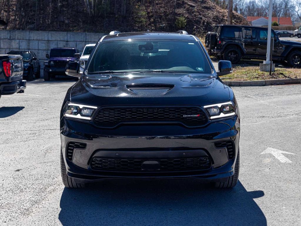 BLUE TOOTH, NAVIGATION, ALLOY WHEELS, SUNROOF/MOONROOF, LEATHER, BACK UP CAMERA, Durango GT Plus, 4D Sport Utility, 3.6L V6 24V VVT, 8-Speed Automatic, AWD, DB Black Clearcoat, Black w/Blacktop Leather SRT Performance Seats, 115V Auxiliary Power Outlet, 180 Amp Alternator, 19 Harman/Kardon Amplified Speakers with Subwoofer, 2nd Row Fold/Tumble Captain Chairs, 2nd Row Mini Console with Cupholders, 3rd Row Floor Mat and Mini Console, 3rd row seats: split-bench, 4-Wheel Disc Brakes, 6-Passenger Seating, 7 and 4 Pin Wiring Harness, 825 Watt Amplifier, ABS brakes, Adaptive Cruise Control with Stop, Advanced Brake Assist, AM/FM radio: SiriusXM w/360L, Apple CarPlay/Android Auto, Auto High Beam Headlamp Control, Auto-Dimming Exterior Driver Mirror, Auto-dimming Rear-View mirror, Automatic temperature control, Black Roof Rails, Blacktop Leather SRT Performance Seats, Blacktop Redline Package, Blind Spot with Trailer Detection, Bright Cargo Area Scuff Pads, Class IV Receiver Hitch, Crypto Sweep Etch Accents, Dual front impact airbags, Dual front side impact airbags, Dual Remote USB Port - Charge Only, Electronic Stability Control, Exterior Mirrors with Memory, Exterior Mirrors with Supplemental Signals, Floor Console with Leather Armrest, Four wheel independent suspension, Front dual zone A/C, Full Speed Forward Collision Warning Plus, Fully automatic headlights, Garage door transmitter, GT Decal with Red Tracer, Heated door mirrors, Heated front seats, Heated Second Row Seats, Heated steering wheel, Heavy-Duty Engine Cooling, Illuminated entry, Integrated Roof Rail Crossbars, Knee airbag, Lane Departure Warning Plus, Leather steering wheel, Leather Trimmed Bucket Seats, Leather Wrapped Door Panels, LED Auxiliary Low Beam and Turn Signal, Low tire pressure warning, Navigation System, Occupant sensing airbag, Overhead airbag, Panic alarm, ParkSense Front/Rear Park Assist with Stop, ParkView Rear Back-Up Camera, Performance Hood, Performance Lower Splitter, Power 6x9 Multi-Function Foldaway Mirrors, Power 8-Way Driver Memory 8-Way Passenger Seats, Power Driver/Passenger 4-Way Lumbar Adjust, Power Liftgate, Power Sunroof, Power Tilt and Telescopic Steering Column, Premium Door Trim Panel, Premium Instrument Panel, Quick Order Package 2BH GT Plus, Radio: Uconnect 5 Nav with 10.1" Display, Rear air conditioning, Rear Load Leveling Suspension, Rear window defroster, Red Accent Stitching, Remote keyless entry, Satin Black Dodge Tail Lamp Badge, Security Alarm, Speed-sensing steering, Sport steering wheel, SRT Rear Spoiler, Sun Visors with Illuminated Vanity Mirrors, Traction control, Trailer Brake Control, Ventilated Front Seats, Wheels: 20" x 8" Black Noise Aluminum, Wireless Charging Pad. Price includes: $1000 - 2026 National Engine Retail Bonus Cash . Exp. 04/30/2026