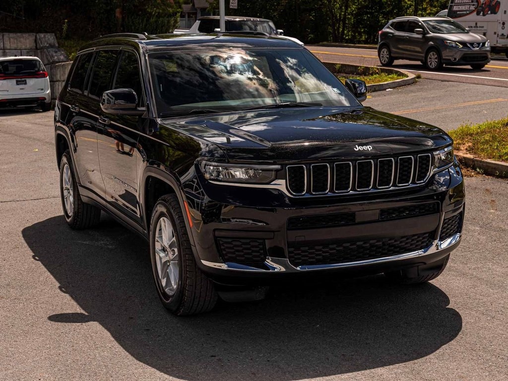 BLUE TOOTH, NAVIGATION, ALLOY WHEELS, SUNROOF/MOONROOF, BACK UP CAMERA, Grand Cherokee L Laredo X, 4D Sport Utility, 3.6L V6 24V VVT, 8-Speed Automatic, 4WD, Diamond Black Crystal Pearlcoat, Global Black w/Cloth Seats, 115V Auxiliary Power Outlet, 3 Rear Seat Head Restraints, 3rd Row Charge-Only USB Ports, 3rd row seats: split-bench, 4-Wheel Disc Brakes, 6 Speakers, 7-Passenger Seating, ABS brakes, Adaptive Cruise Control, Anti-whiplash front head restraints, Automatic temperature control, Brake assist, Dual front impact airbags, Dual front side impact airbags, Electronic Stability Control, Four wheel independent suspension, Front dual zone A/C, Fully automatic headlights, Heated door mirrors, Heated Front Seats, Heated Steering Wheel, Illuminated entry, Knee airbag, Laredo X, Low tire pressure warning, Luxury Tech Group I, Normal Duty Suspension, Occupant sensing airbag, Overhead airbag, ParkView Rear Back-Up Camera, Power door mirrors, Power driver seat, Power Liftgate, Power Sunroof, Quick Order Package 23D Laredo X, Radio: Uconnect 5 w/8.4" Display, Rain Sensitive Windshield Wipers, Rear air conditioning, Rear window defroster, Rear window wiper, Reclining 3rd row seat, Remote keyless entry, Remote Start System, Security system, Selectable Tire Fill Alert, Telescoping steering wheel, Tilt steering wheel, Traction control, Wheels: 18" x 8.0" Fully Painted Aluminum, Wireless Charging Pad. Price includes: $2500 - 2025 National Retail Bonus Cash . Exp. 09/30/2025