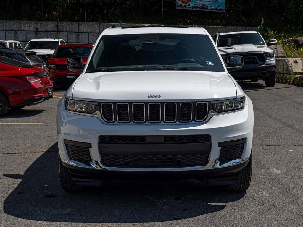 BLUE TOOTH, NAVIGATION, ALLOY WHEELS, BACK UP CAMERA, Grand Cherokee L Laredo X, 4D Sport Utility, 3.6L V6 24V VVT, 8-Speed Automatic, 4WD, Bright White Clearcoat, Global Black w/Cloth Seats, 115V Auxiliary Power Outlet, 3rd Row Charge-Only USB Ports, 3rd row seats: split-bench, 4-Wheel Disc Brakes, 6 Speakers, ABS brakes, Anti-whiplash front head restraints, Automatic temperature control, Brake assist, Cloth Seats, Cruise control, Dual front impact airbags, Dual front side impact airbags, Electronic Stability Control, Four wheel independent suspension, Front dual zone A/C, Fully automatic headlights, Heated door mirrors, Heated Front Seats, Heated Steering Wheel, Illuminated entry, Knee airbag, Laredo X, Low tire pressure warning, Luxury Tech Group I, Manual Fold Seatbacks, Occupant sensing airbag, Overhead airbag, ParkView Rear Back-Up Camera, Power door mirrors, Power driver seat, Power Liftgate, Power Sunroof, Quick Order Package 23D Laredo X, Radio: Uconnect 5 w/8.4" Display, Rain Sensitive Windshield Wipers, Rear air conditioning, Rear window defroster, Rear window wiper, Reclining 3rd row seat, Remote keyless entry, Remote Start System, Security system, Selectable Tire Fill Alert, Telescoping steering wheel, Tilt steering wheel, Traction control, Wheels: 18" x 8.0" Fully Painted Aluminum, Wireless Charging Pad. Price includes: $2500 - 2025 National Retail Bonus Cash . Exp. 09/30/2025