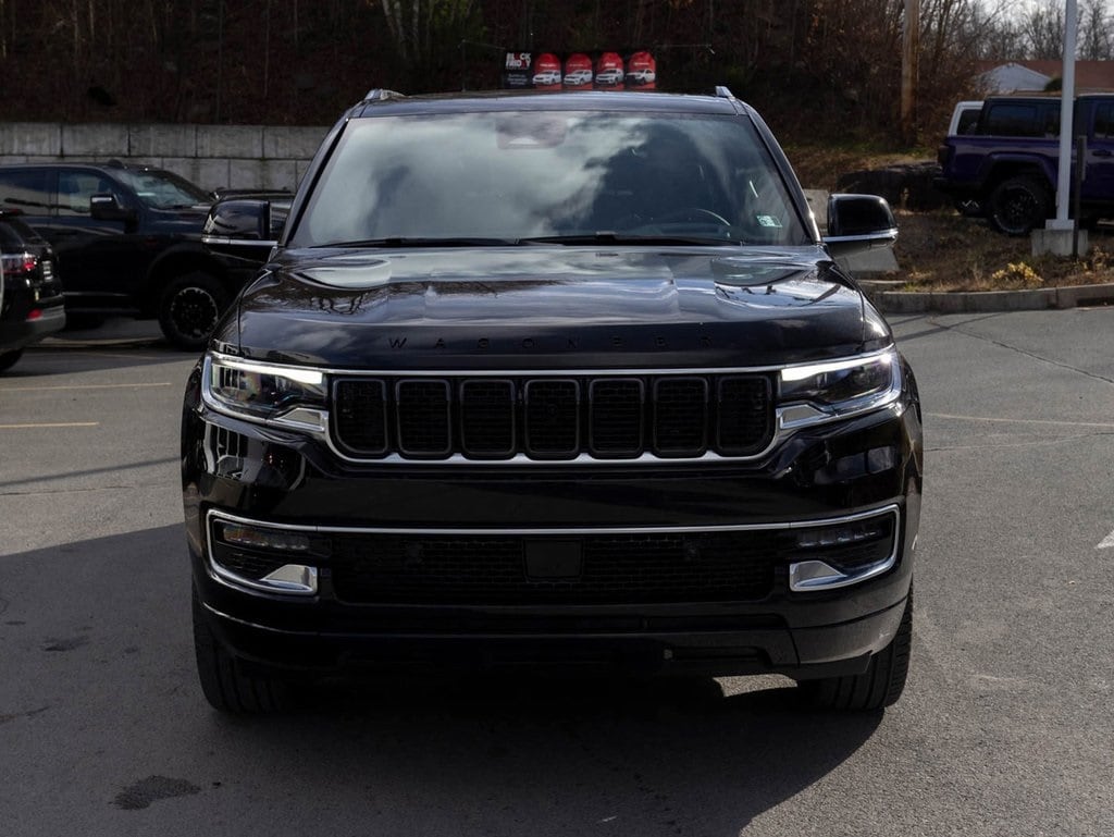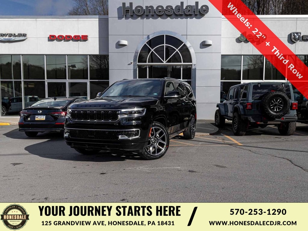 BLUE TOOTH, NAVIGATION, ALLOY WHEELS, PANORAMIC SUNROOF, LEATHER, BACK UP CAMERA, Wagoneer Series III Super, 4D Sport Utility, 3.0L I6, 8-Speed Automatic, 4WD, Diamond Black Crystal Pearlcoat, Global Black w/Leather Trimmed Bucket Seats, 118 MPH Maximum Speed Calibration, 19 Speaker McIntosh Audio System, 3 Panel Sunroof, 3rd row seats: bench, 4-Wheel Disc Brakes, ABS brakes, Adaptive Cruise Control, AM/FM radio: SiriusXM with 360L, Apple CarPlay/Android Auto, Auto High-beam Headlights, Auto-dimming door mirrors, Auto-dimming Rear-View mirror, Auto-leveling suspension, Automatic temperature control, Black Roof, Brake assist, Dual front impact airbags, Dual front side impact airbags, Electronic Stability Control, Four wheel independent suspension, Front dual zone A/C, Front fog lights, Fully automatic headlights, Garage door transmitter, Genuine wood console insert, Genuine wood dashboard insert, Genuine wood door panel insert, Heads-Up Display, Heated door mirrors, Heated front seats, Heated rear seats, Heated steering wheel, Illuminated entry, Knee airbag, Leather Trimmed Bucket Seats, Low tire pressure warning, Luxury Front & Rear Floor Mats, Memory seat, Navigation System, Normal Duty Suspension, Occupant sensing airbag, Overhead airbag, Panic alarm, ParkView Rear Back-Up Camera, Power adjustable front head restraints, Power Deployable Running Boards, Power door mirrors, Power driver seat, Power Liftgate, Power passenger seat, Quick Order Package 25C Super, Radio: Uconnect 5 Nav w/10.1" Display, Rear dual zone A/C, Rear window defroster, Reclining 3rd row seat, Remote keyless entry, Reversible Carpet/Vinyl Cargo Mat, Security system, Speed-sensing steering, Steering wheel memory, Super Wagoneer Exterior Accents, Telescoping steering wheel, Tilt steering wheel, Traction control, Turn signal indicator mirrors, Ventilated front seats, Wheels: 22" x 9.0" Machined Face w/Black Noise.