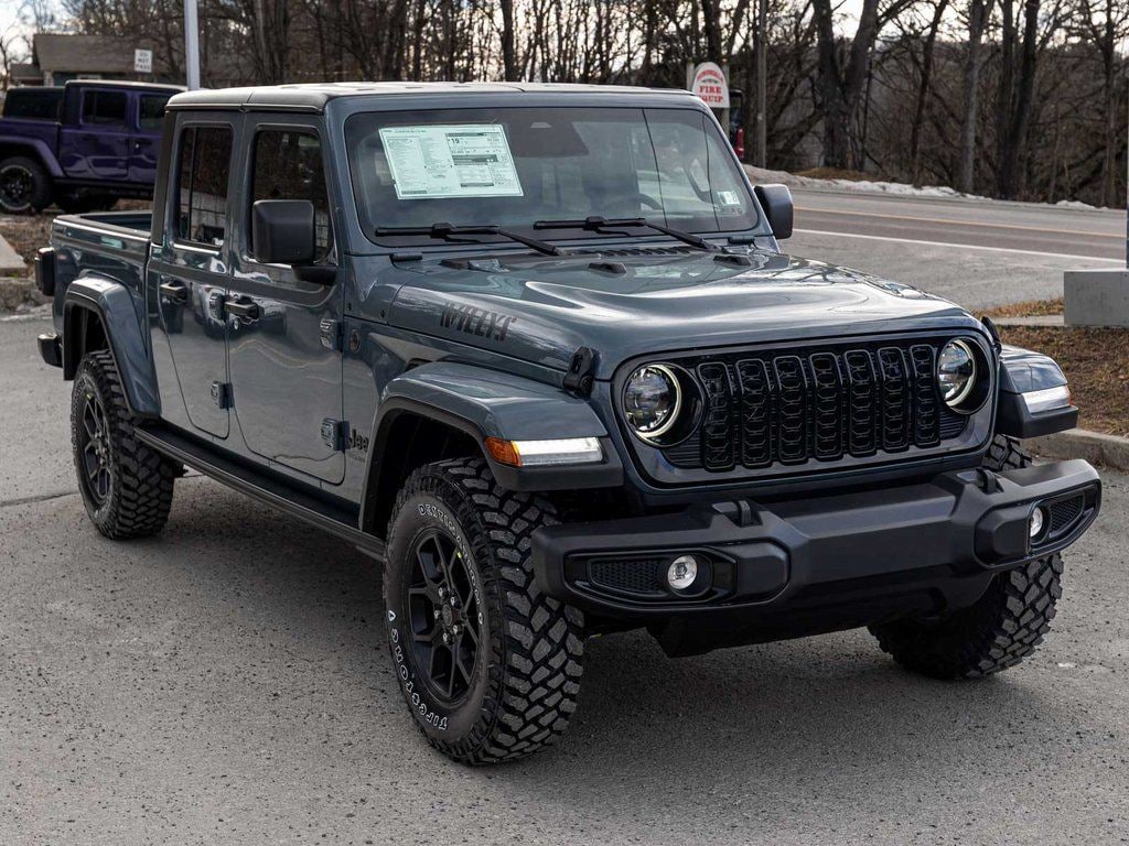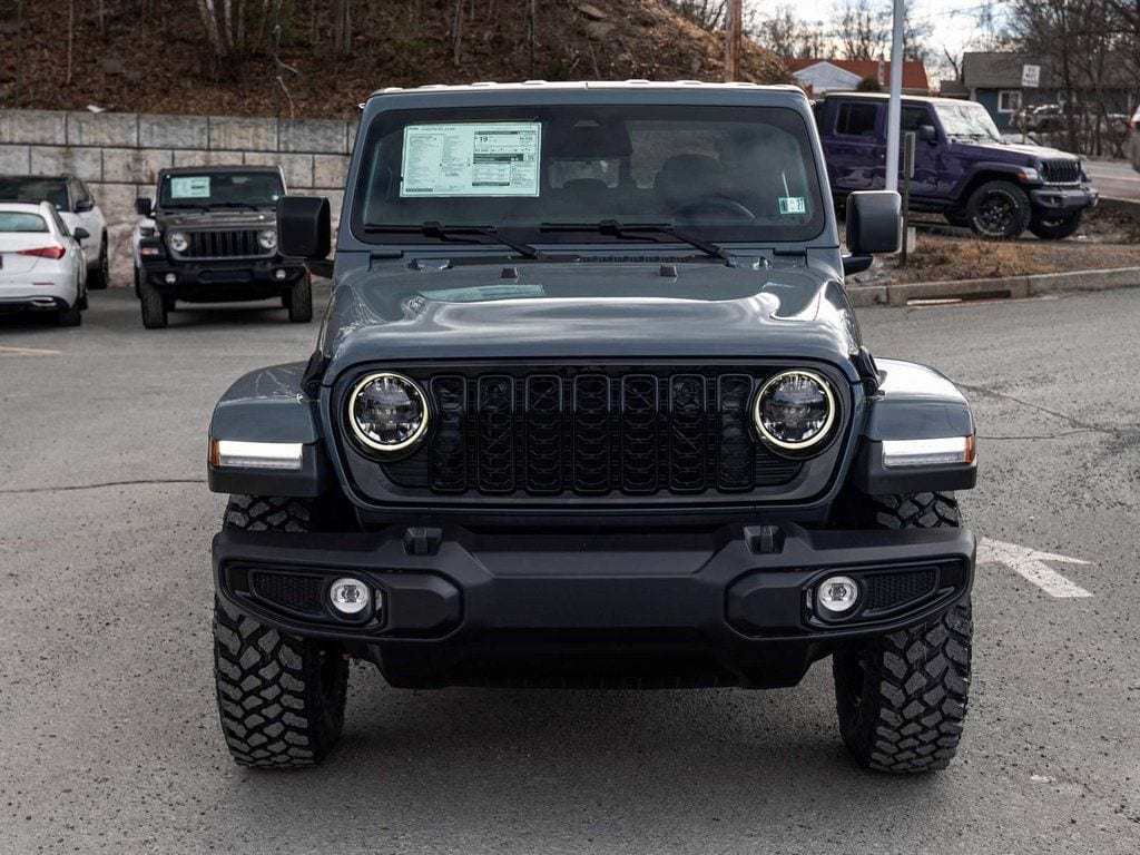BLUE TOOTH, NAVIGATION, BACK UP CAMERA, Gladiator Willys, 4D Crew Cab, 3.6L V6 24V VVT, 8-Speed Automatic, 4WD, Anvil Clearcoat, Black w/Cloth Low-Back Bucket Seats, Convenience Group, 12.3" Touchscreen Display, 2-Piece Body Color Fender Flares, 4-Wheel Disc Brakes, 4-Wheel Drive Decal, 4G LTE Wi-Fi Hot Spot, 8 Speakers, ABS brakes, Advanced Brake Assist, Air Conditioning with Auto Temp Control, Alpine Premium Audio System, AM/FM radio: SiriusXM with 360L, Apple CarPlay/Android Auto, Automatic Headlamps, Auxiliary Switches, Black 3-Piece Hard Top, Black Grille, Class IV Receiver Hitch, Cloth Low-Back Bucket Seats, Cluster 7.0" TFT Color Display, Corning Gorilla Glass, Cruise control, Daytime Running Lamp System, Daytime Running Lamps LED Accents, Deep Tint Sunscreen Windows, Dual front impact airbags, Dual front side impact airbags, E-Locker Rear Axle, Electronic Stability Control, Freedom Panel Storage Bag, Front Door Locks 2-Door Passive Entry, Front Heavy Duty Red Accent Shock Absorbers, Front LED Fog Lamps, Full Speed Forward Collision Warning Plus, GPS Navigation, Heated Front Seats, Heated Steering Wheel, Heavy-Duty Engine Cooling, Illuminated entry, LED Premium Reflector Headlamps, LED Taillamps, Low tire pressure warning, Mold in Color Bumper with Gloss Black, MOPAR All-Weather Slush Mats, Occupant sensing airbag, Off-Road Plus Mode, Overhead airbag, Panic alarm, ParkView Rear Back-Up Camera, Power Heated Mirrors, Premium Wrapped Steering Wheel, Protection Sill Rails, Quick Order Package 24W Willys, Radio: Uconnect 5 with 12.3" Display, Rear Heavy Duty Red Accent Shock Absorbers, Rear Sliding Window, Rear Window Defroster, Remote keyless entry, Remote Start System, Security Alarm, Sun Visors with Illuminated Vanity Mirrors, Telescoping steering wheel, Tilt steering wheel, Traction control, Trailer Hitch Zoom, Universal Garage Door Opener, Wheels: 17" x 7.5" Painted Black, Willys Hood Decal, Willys Suspension.
