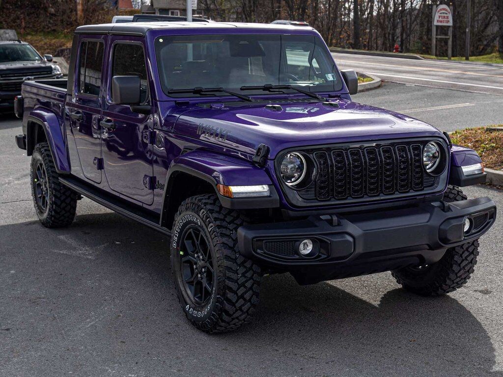 BLUE TOOTH, NAVIGATION, ALLOY WHEELS, BACK UP CAMERA, Gladiator Willys, 4D Crew Cab, 3.6L V6 24V VVT, 8-Speed Automatic, 4WD, Reign, Black w/Cloth Low-Back Bucket Seats, 4-Wheel Disc Brakes, 4-Wheel Drive Decal, 8 Speakers, ABS brakes, Advanced Brake Assist, Alpine Premium Audio System, AM/FM radio: SiriusXM with 360L, Apple CarPlay/Android Auto, Automatic Headlamps, Auxiliary Switches, Black 3-Piece Hard Top, Class IV Receiver Hitch, Cloth Low-Back Bucket Seats, Cluster 7.0" TFT Color Display, Convenience Group, Corning Gorilla Glass, Cruise control, Daytime Running Lamp System, Daytime Running Lamps LED Accents, Deep Tint Sunscreen Windows, Dual front impact airbags, Dual front side impact airbags, E-Locker Rear Axle, Electronic Stability Control, Emergency/Assistance Call, Freedom Panel Storage Bag, Front Door Locks 2-Door Passive Entry, Front Heavy Duty Red Accent Shock Absorbers, Front LED Fog Lamps, Full Speed Forward Collision Warning Plus, GPS Navigation, Heated Front Seats, Heated Steering Wheel, Heavy-Duty Engine Cooling, Illuminated entry, LED Premium Reflector Headlamps, LED Taillamps, Low tire pressure warning, MOPAR All-Weather Slush Mats, Normal Duty Suspension, Occupant sensing airbag, Off-Road Plus Mode, Overhead airbag, Panic alarm, ParkView Rear Back-Up Camera, Power Heated Mirrors, Premium Wrapped Steering Wheel, Protection Sill Rails, Quick Order Package 24W Willys, Rear Heavy Duty Red Accent Shock Absorbers, Rear Sliding Window, Rear Window Defroster, Remote keyless entry, Remote Start System, Security Alarm, Telescoping steering wheel, Tilt steering wheel, Traction control, Trailer Hitch Zoom, Universal Garage Door Opener, Wheels: 17" x 7.5" Painted Black, Willys Hood Decal, Willys Suspension. Price includes: $1000 - 2026 National Retail Bonus Cash . Exp. 03/31/2026