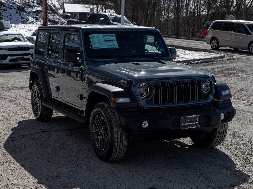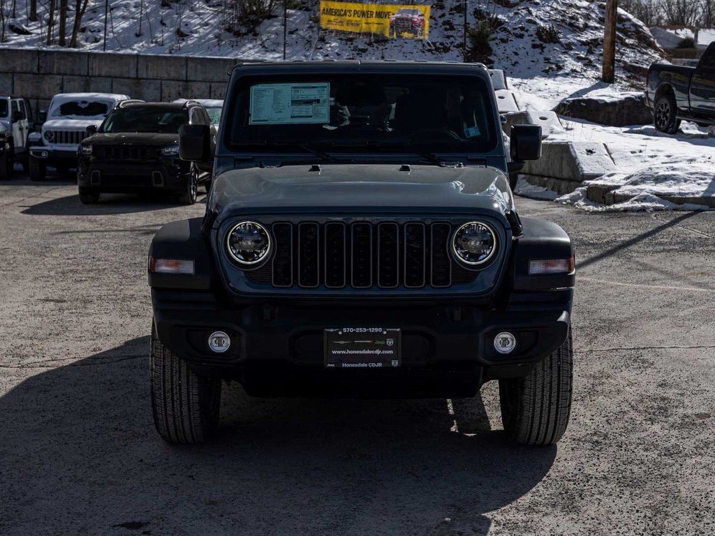 BLUE TOOTH, NAVIGATION, ALLOY WHEELS, BACK UP CAMERA, Wrangler Sport S, 4D Sport Utility, 3.6L V6 24V VVT, 8-Speed Automatic, 4WD, Anvil Clearcoat, Black w/Cloth Low-Back Bucket Seats, 12.3" Touchscreen Display, 2-Door Passive Entry, Front Door Locks, 4-Wheel Disc Brakes, 4G LTE Wi-Fi Hot Spot, 8 Speakers, ABS brakes, Advanced Brake Assist, Air Conditioning with Auto Temp Control, Air Filtering, Alpine Premium Audio System, Apple CarPlay/Android Auto, Automatic Headlamps, Black 3-Piece Hard Top, Cloth Low-Back Bucket Seats, Cluster 7.0" TFT Color Display, Convenience Group, Corning Gorilla Glass, Deep Tint Sunscreen Windows, Dual front impact airbags, Dual front side impact airbags, Electronic Stability Control, Enhanced Adaptive Cruise Control, Freedom Panel Storage Bag, Front LED Fog Lamps, Full Speed Forward Collision Warning Plus, Heated Front Seats, Heated Steering Wheel, Illuminated entry, Integrated Center Stack Radio, LED Headlamp and Fog Lamp Group, LED Premium Reflector Headlamps, Low tire pressure warning, Mopar Black Tubular Side Steps, Normal Duty Suspension, Occupant sensing airbag, Overhead airbag, Panic alarm, ParkView Rear Back-Up Camera, Power Heated Mirrors, Premium Wrapped Steering Wheel, Quick Order Package 24S Sport S, Radio: Uconnect 5 with 12.3" Display, Rear Window Defroster, Rear Window Wiper/Washer, Security Alarm, SiriusXM with 360L, Sun Visors with Illuminated Vanity Mirrors, Telescoping steering wheel, Tilt steering wheel, Traction control, Universal Garage Door Opener, Wheels: 17" x 7.5" Gray. Price includes: $1000 - 2026 National Retail Bonus Cash . Exp. 03/31/2026
