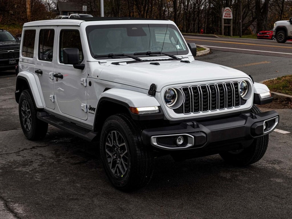 BLUE TOOTH, NAVIGATION, ALLOY WHEELS, LEATHER, BACK UP CAMERA, Wrangler Sahara, 4D Sport Utility, 2.0L I4 DOHC, 8-Speed Automatic, 4WD, Bright White Clearcoat, Black w/McKinley Trimmed Seats, Sahara Popular Equipment Group, Sky 1-Touch Power Top, 12.3" Touchscreen Display, 4-Wheel Disc Brakes, 4G LTE Wi-Fi Hot Spot, 8 Speakers, ABS brakes, Adaptive Cruise Control, Alpine Premium Audio System, AM/FM radio: SiriusXM with 360L, Apple CarPlay/Android Auto, Auto High Beam Headlamp Control, Auto-Dimming Rear-View Mirror, Automatic temperature control, Blind Spot & Cross Path Detection, Brake assist, Connected Travel & Traffic Services, Connectivity - US/Canada, Disassociated Touchscreen Display, Dual front impact airbags, Dual front side impact airbags, Electronic Stability Control, Front dual zone A/C, Front fog lights, Fully automatic headlights, GPS Navigation, Hard Seat Back, HD Radio, Heated door mirrors, Heated steering wheel, Heavy Duty Suspension w/Gas Shocks, Illuminated entry, Integrated Off-Road Camera, Integrated Voice Command w/Bluetooth, Leather Wrapped Park Brake Handle, Leather Wrapped Shift Knob, Low tire pressure warning, McKinley Trimmed Seats, Occupant sensing airbag, Overhead airbag, Panic alarm, ParkSense Rear Park Assist System, ParkView Rear Back-Up Camera, Power 4-Way Driver Lumbar Adjust, Power 4-Way Passenger Lumbar Adjust, Power Adjust 8-Way Driver Seat, Power Adjust 8-Way Front Passenger Seat, Power door mirrors, Power Top Quarter Window Storage Bag, Quick Order Package 22G, Radio: Uconnect 5 Nav w/12.3" Display, Rear Window Defroster, Rear Window Wiper/Washer, Remote keyless entry, Removable Rear Quarter Windows, Security system, Side Steps, SiriusXM Radio Service, SiriusXM w/360L, Telescoping steering wheel, Tilt steering wheel, Traction control, Universal Garage Door Opener, Wheels: 18" x 7.5" Machine/Painted Gray.