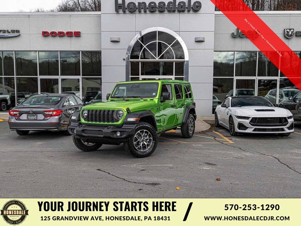 BLUE TOOTH, NAVIGATION, ALLOY WHEELS, BACK UP CAMERA, Wrangler Sport S, 4D Sport Utility, 2.0L I4 DOHC, 8-Speed Automatic, 4WD, Mojito Clearcoat, Black w/Cloth Low-Back Bucket Seats, Convenience Group, 2-Door Passive Entry, Front Door Locks, 4-Wheel Disc Brakes, ABS brakes, Advanced Brake Assist, Air Conditioning w/Auto Temperature Control, Air Filtering, Alpine Premium Audio System, AM/FM radio: SiriusXM with 360L, Apple CarPlay/Android Auto, Automatic Headlamps, Cloth Low-Back Bucket Seats, Cluster 7.0" TFT Color Display, Corning Gorilla Glass, Deep Tint Sunscreen Windows, Dual front impact airbags, Dual front side impact airbags, Electronic Stability Control, Emergency/Assistance Call, Enhanced Adaptive Cruise Control, Front fog lights, Full Speed Forward Collision Warning Plus, Heated Front Seats, Heated Steering Wheel, Illuminated entry, Low tire pressure warning, Normal Duty Suspension, Occupant sensing airbag, Overhead airbag, Panic alarm, ParkView Rear Back-Up Camera, Power Heated Mirrors, Power Top Quarter Window Storage Bag, Premium Wrapped Steering Wheel, Quick Order Package 22S Sport S, Radio: Uconnect 5 w/12.3" Display, Rear Window Defroster, Rear Window Wiper/Washer, Remote keyless entry, Remote Start System, Removable Rear Quarter Windows, Security Alarm, Sky 1-Touch Power Top, Sun Visors w/Illuminated Vanity Mirrors, Telescoping steering wheel, Tilt steering wheel, Traction control, Universal Garage Door Opener, Wheels: 17" x 7.5" Machined w/Black Pockets.