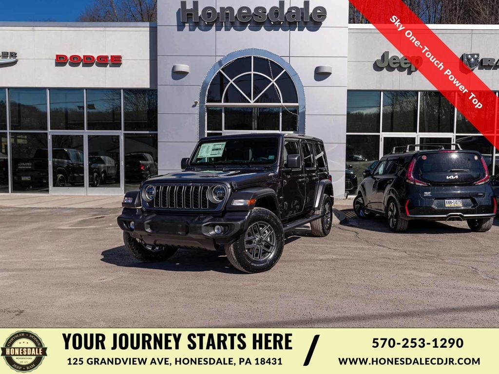 BLUE TOOTH, NAVIGATION, ALLOY WHEELS, BACK UP CAMERA, Wrangler Sport S, 4D Sport Utility, 3.6L V6 24V VVT, 8-Speed Automatic, 4WD, Granite Crystal Metallic Clearcoat, Black w/Cloth Low-Back Bucket Seats, 12.3" Touchscreen Display, 2-Door Passive Entry, Front Door Locks, 4-Wheel Disc Brakes, 4G LTE Wi-Fi Hot Spot, 8 Speakers, ABS brakes, Advanced Brake Assist, Air Conditioning with Auto Temp Control, Air Filtering, Alpine Premium Audio System, Apple CarPlay/Android Auto, Automatic Headlamps, Cloth Low-Back Bucket Seats, Cluster 7.0" TFT Color Display, Convenience Group, Corning Gorilla Glass, Dual front impact airbags, Dual front side impact airbags, Electronic Stability Control, Enhanced Adaptive Cruise Control, Front LED Fog Lamps, Full Speed Forward Collision Warning Plus, Heated Front Seats, Heated Steering Wheel, Illuminated entry, LED Headlamp and Fog Lamp Group, LED Premium Reflector Headlamps, Low tire pressure warning, Mopar Black Tubular Side Steps, Normal Duty Suspension, Occupant sensing airbag, Overhead airbag, Panic alarm, ParkView Rear Back-Up Camera, Power Heated Mirrors, Power Top Quarter Window Storage Bag, Premium Wrapped Steering Wheel, Quick Order Package 24S Sport S, Radio: Uconnect 5 with 12.3" Display, Rear Window Defroster, Remote keyless entry, Removable Rear Quarter Windows, Security Alarm, SiriusXM with 360L, Sky One-Touch Power Top, Sun Visors with Illuminated Vanity Mirrors, Telescoping steering wheel, Tilt steering wheel, Universal Garage Door Opener, Wheels: 17" x 7.5" Gray. Price includes: $1000 - 2026 National Retail Bonus Cash . Exp. 03/31/2026