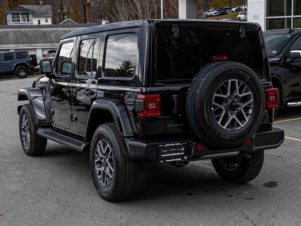 BLUE TOOTH, NAVIGATION, ALLOY WHEELS, LEATHER, Wrangler Sahara, 4D Sport Utility, 2.0L I4 DOHC, 8-Speed Automatic, 4WD, Black Clearcoat, Black w/McKinley Trimmed Seats, Sahara Popular Equipment Group, Sky 1-Touch Power Top, 12.3" Touchscreen Display, 4-Wheel Disc Brakes, 4G LTE Wi-Fi Hot Spot, 8 Speakers, ABS brakes, Adaptive Cruise Control, Alpine Premium Audio System, Apple CarPlay/Android Auto, Auto High Beam Headlamp Control, Auto-Dimming Rear-View Mirror, Automatic temperature control, Blind Spot & Cross Path Detection, Brake assist, Connected Travel & Traffic Services, Connectivity - US/Canada, Disassociated Touchscreen Display, Dual front impact airbags, Dual front side impact airbags, Electronic Stability Control, Front dual zone A/C, Front fog lights, Fully automatic headlights, GPS Navigation, Hard Seat Back, HD Radio, Heated door mirrors, Heated steering wheel, Illuminated entry, Integrated Center Stack Radio, Integrated Off-Road Camera, Integrated Voice Command w/Bluetooth, Leather Wrapped Park Brake Handle, Leather Wrapped Shift Knob, Low tire pressure warning, McKinley Trimmed Seats, Occupant sensing airbag, Overhead airbag, ParkSense Rear Park Assist System, ParkView Rear Back-Up Camera, Power 4-Way Driver Lumbar Adjust, Power 4-Way Passenger Lumbar Adjust, Power Adjust 8-Way Driver Seat, Power Adjust 8-Way Front Passenger Seat, Power door mirrors, Power Top Quarter Window Storage Bag, Quick Order Package 22G, Radio: Uconnect 5 Nav w/12.3" Display, Rear Window Defroster, Rear Window Wiper/Washer, Remote keyless entry, Removable Rear Quarter Windows, Security system, Side Steps, SiriusXM Radio Service, SiriusXM w/360L, Telescoping steering wheel, Tilt steering wheel, Traction control, Universal Garage Door Opener, Wheels: 18" x 7.5" Machine/Painted Gray.