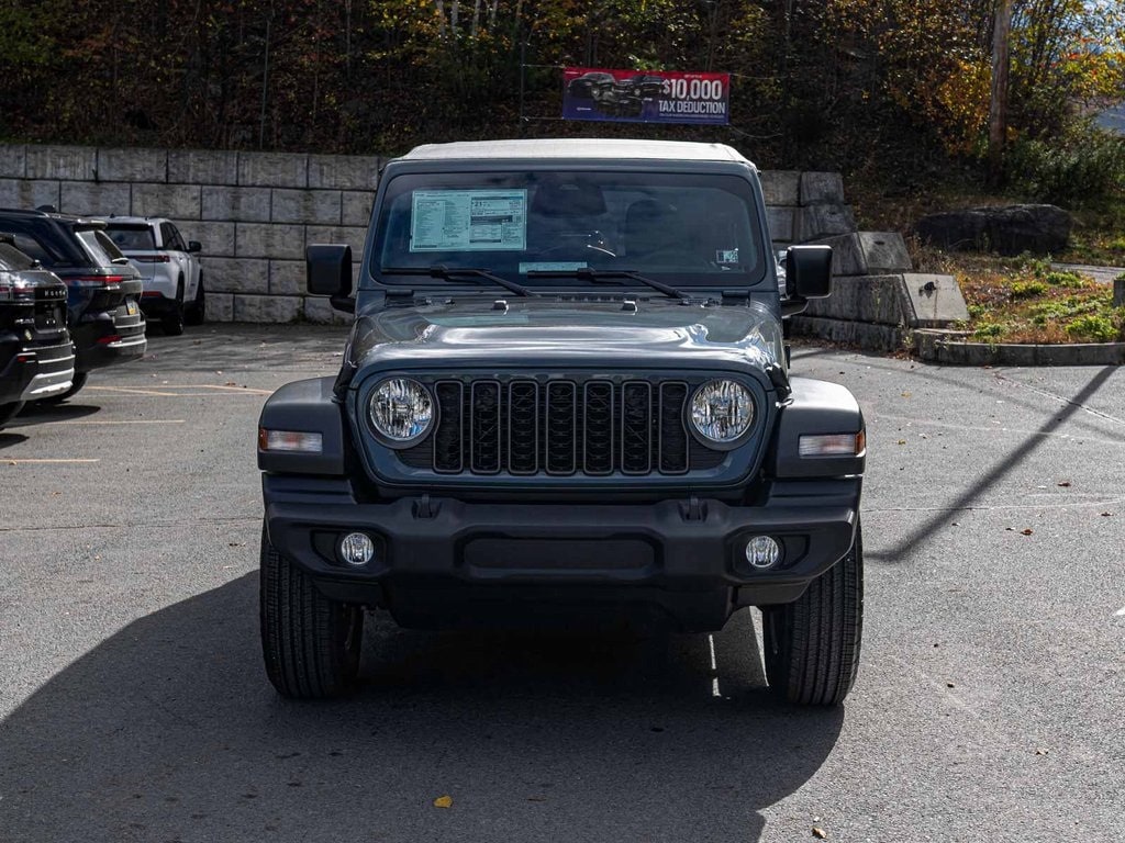 BLUE TOOTH, NAVIGATION, ALLOY WHEELS, BACK UP CAMERA, Wrangler Sport S, 4D Sport Utility, 2.0L I4 DOHC, 8-Speed Automatic, 4WD, Anvil Clear Coat, Black w/Cloth Low-Back Bucket Seats, 2-Door Passive Entry, Front Door Locks, 4-Wheel Disc Brakes, 8 Speakers, ABS brakes, Advanced Brake Assist, Air Conditioning w/Auto Temperature Control, Air Filtering, Alpine Premium Audio System, AM/FM radio: SiriusXM with 360L, Apple CarPlay/Android Auto, Automatic Headlamps, Cloth Low-Back Bucket Seats, Cluster 7.0" TFT Color Display, Convenience Group, Corning Gorilla Glass, Deep Tint Sunscreen Windows, Dual front impact airbags, Dual front side impact airbags, Electronic Stability Control, Emergency/Assistance Call, Enhanced Adaptive Cruise Control, Front fog lights, Full Speed Forward Collision Warning Plus, Heated Front Seats, Heated Steering Wheel, Illuminated entry, Low tire pressure warning, Mopar Black Tubular Side Steps, Normal Duty Suspension, Occupant sensing airbag, Overhead airbag, Panic alarm, ParkView Rear Back-Up Camera, Power Heated Mirrors, Premium Wrapped Steering Wheel, Quick Order Package 22S Sport S, Radio: Uconnect 5 w/12.3" Display, Remote keyless entry, Remote Start System, Security Alarm, Sun Visors w/Illuminated Vanity Mirrors, Telescoping steering wheel, Tilt steering wheel, Traction control, Universal Garage Door Opener, Wheels: 17" x 7.5" Gray. Price includes: $1500 - 2026 National Retail Bonus Cash . Exp. 12/01/2025