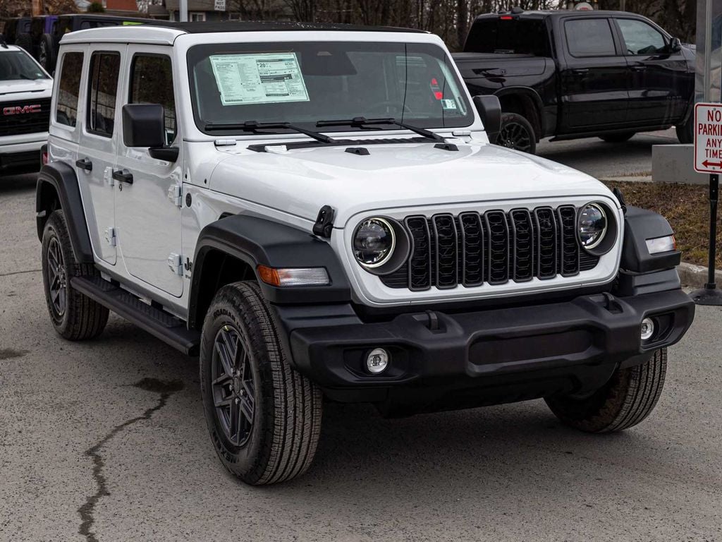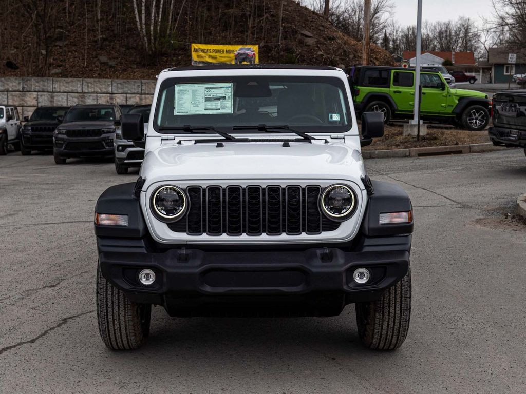 BLUE TOOTH, NAVIGATION, ALLOY WHEELS, BACK UP CAMERA, Wrangler Sport S, 4D Sport Utility, 3.6L V6 24V VVT, 8-Speed Automatic, 4WD, Bright White Clearcoat, Black w/Cloth Low-Back Bucket Seats, 12.3" Touchscreen Display, 2-Door Passive Entry, Front Door Locks, 4-Wheel Disc Brakes, 4G LTE Wi-Fi Hot Spot, 8 Speakers, ABS brakes, Advanced Brake Assist, Air Conditioning with Auto Temp Control, Air Filtering, Alpine Premium Audio System, Apple CarPlay/Android Auto, Automatic Headlamps, Cloth Low-Back Bucket Seats, Cluster 7.0" TFT Color Display, Convenience Group, Corning Gorilla Glass, Dual front impact airbags, Dual front side impact airbags, Electronic Stability Control, Enhanced Adaptive Cruise Control, Front LED Fog Lamps, Full Speed Forward Collision Warning Plus, Heated Front Seats, Heated Steering Wheel, Illuminated entry, Integrated Center Stack Radio, LED Headlamp and Fog Lamp Group, LED Premium Reflector Headlamps, Low tire pressure warning, Mopar Black Tubular Side Steps, Normal Duty Suspension, Occupant sensing airbag, Overhead airbag, Panic alarm, ParkView Rear Back-Up Camera, Power Heated Mirrors, Power Top Quarter Window Storage Bag, Premium Wrapped Steering Wheel, Quick Order Package 24S Sport S, Radio: Uconnect 5 with 12.3" Display, Rear Window Defroster, Rear Window Wiper/Washer, Removable Rear Quarter Windows, Security Alarm, SiriusXM with 360L, Sky One-Touch Power Top, Sun Visors with Illuminated Vanity Mirrors, Telescoping steering wheel, Tilt steering wheel, Traction control, Universal Garage Door Opener, Wheels: 17" x 7.5" Gray.