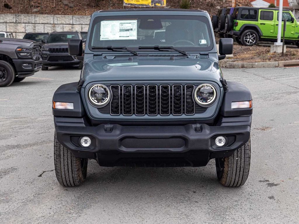 BLUE TOOTH, NAVIGATION, ALLOY WHEELS, BACK UP CAMERA, Wrangler Sport S, 4D Sport Utility, 3.6L V6 24V VVT, 8-Speed Automatic, 4WD, Anvil Clearcoat, Black w/Cloth Low-Back Bucket Seats, 12.3" Touchscreen Display, 2-Door Passive Entry, Front Door Locks, 4-Wheel Disc Brakes, 4G LTE Wi-Fi Hot Spot, 8 Speakers, ABS brakes, Advanced Brake Assist, Air Conditioning with Auto Temp Control, Air Filtering, Alpine Premium Audio System, Apple CarPlay/Android Auto, Automatic Headlamps, Cloth Low-Back Bucket Seats, Cluster 7.0" TFT Color Display, Convenience Group, Corning Gorilla Glass, Dual front impact airbags, Dual front side impact airbags, Electronic Stability Control, Enhanced Adaptive Cruise Control, Front LED Fog Lamps, Full Speed Forward Collision Warning Plus, Heated Front Seats, Heated Steering Wheel, Illuminated entry, LED Headlamp and Fog Lamp Group, LED Premium Reflector Headlamps, Low tire pressure warning, Mopar Black Tubular Side Steps, Normal Duty Suspension, Occupant sensing airbag, Overhead airbag, Panic alarm, ParkView Rear Back-Up Camera, Power Heated Mirrors, Power Top Quarter Window Storage Bag, Premium Wrapped Steering Wheel, Quick Order Package 24S Sport S, Radio: Uconnect 5 with 12.3" Display, Rear Window Defroster, Rear Window Wiper/Washer, Remote keyless entry, Removable Rear Quarter Windows, Security Alarm, SiriusXM with 360L, Sky One-Touch Power Top, Sun Visors with Illuminated Vanity Mirrors, Telescoping steering wheel, Tilt steering wheel, Traction control, Universal Garage Door Opener, Wheels: 17" x 7.5" Gray. Price includes: $1000 - 2026 National Retail Bonus Cash . Exp. 04/30/2026