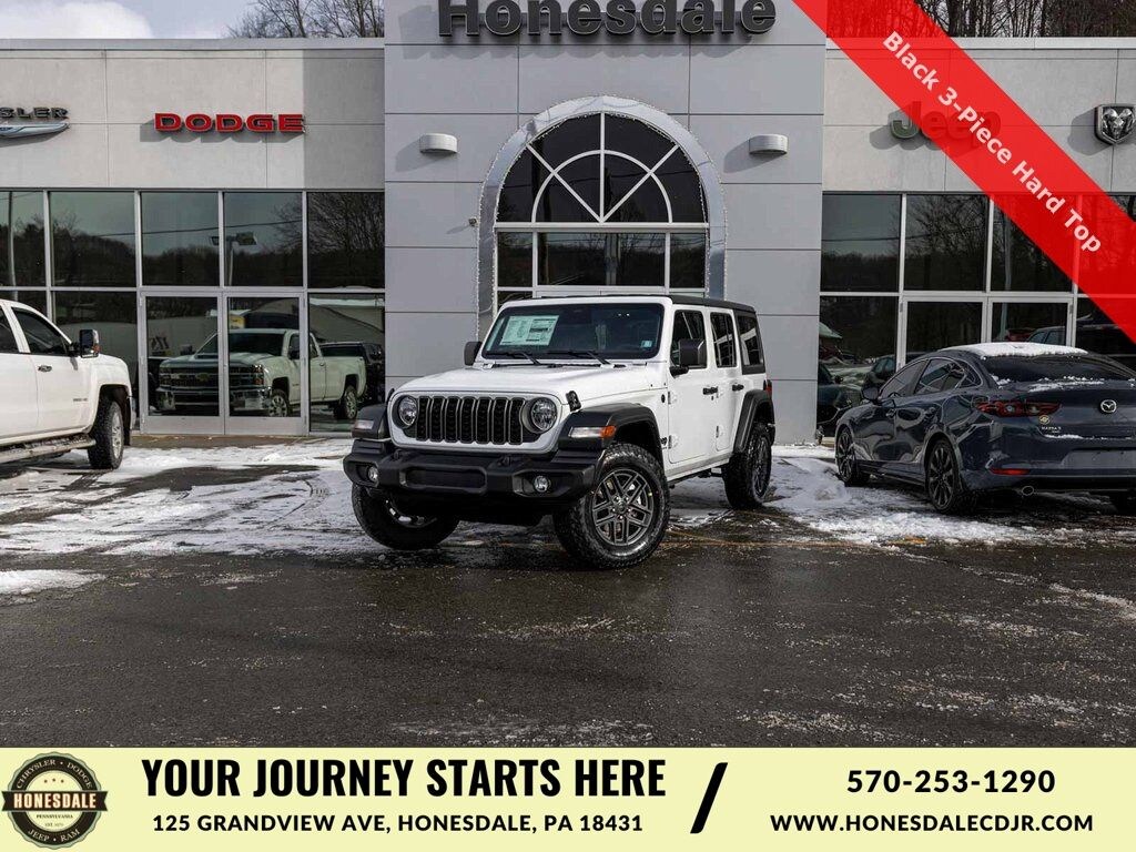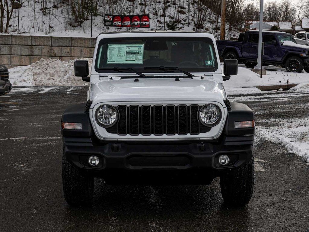BLUE TOOTH, NAVIGATION, ALLOY WHEELS, BACK UP CAMERA, Wrangler Sport S, 4D Sport Utility, 3.6L V6 24V VVT, 8-Speed Automatic, 4WD, Bright White Clearcoat, Black w/Cloth Low-Back Bucket Seats, 12.3" Touchscreen Display, 2-Door Passive Entry, Front Door Locks, 4-Wheel Disc Brakes, 4G LTE Wi-Fi Hot Spot, 8 Speakers, ABS brakes, Advanced Brake Assist, Air Conditioning with Auto Temp Control, Air Filtering, Alpine Premium Audio System, Apple CarPlay/Android Auto, Automatic Headlamps, Black 3-Piece Hard Top, Black MOPAR Stitched Leather, Cloth Low-Back Bucket Seats, Cluster 7.0" TFT Color Display, Convenience Group, Corning Gorilla Glass, Deep Tint Sunscreen Windows, Dual front impact airbags, Dual front side impact airbags, Electronic Stability Control, Emergency/Assistance Call, Enhanced Adaptive Cruise Control, Freedom Panel Storage Bag, Front fog lights, Full Speed Forward Collision Warning Plus, Heated Front Seats, Heated Steering Wheel, Illuminated entry, Low tire pressure warning, Normal Duty Suspension, Occupant sensing airbag, Overhead airbag, Panic alarm, ParkView Rear Back-Up Camera, Power Heated Mirrors, Premium Wrapped Steering Wheel, Quick Order Package 24S Sport S, Radio: Uconnect 5 with 12.3" Display, Rear Window Defroster, Rear Window Wiper/Washer, Remote keyless entry, Security Alarm, SiriusXM with 360L, Sun Visors with Illuminated Vanity Mirrors, Telescoping steering wheel, Tilt steering wheel, Traction control, Universal Garage Door Opener, Wheels: 17" x 7.5" Gray.