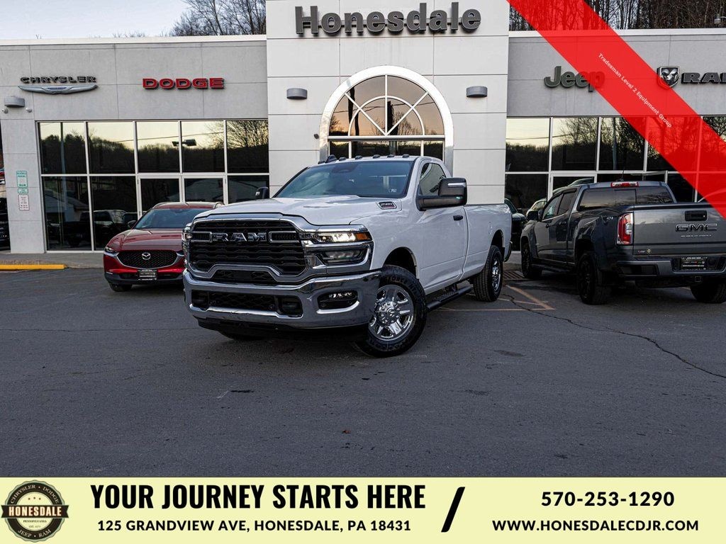 BLUE TOOTH, NAVIGATION, BACK UP CAMERA, 2500 Tradesman, 2D Standard Cab, 6.4L V8, 8-Speed Automatic, RWD, Bright White Clearcoat, Diesel Gray/Black w/Heavy Duty Vinyl 40/20/40 Split Bench Seat, 115V Auxiliary Front Power Outlet, 12" Touchscreen Display, 4 Way Front Headrests, 4-Wheel Disc Brakes, 40/20/40 Split Bench Seat, 400W Inverter, 4G LTE Wi-Fi Hot Spot, 6 Speakers, ABS brakes, Adaptive Cruise Control, Air Cond ATC w/Dual Zone Control, Alexa Built-In, Anti-Spin Differential Rear Axle, Apple CarPlay/Android Auto, Auto-Dimming Rear-View Mirror, Bed Convenience Group, Black Exterior Mirrors, Brake assist, Bright Front Bumper, Bright Rear Bumper, Carpet Floor Covering, Center Hub, Chrome Grille Surround, Cloth 40/20/40 Bench Seat, Commercial Features Package, Connected Travel & Traffic Services, Connectivity - US/Canada, Convenience Group, Disassociated Touchscreen Display, Dual Alternators Rated At 400 Amps, Dual front impact airbags, Dual front side impact airbags, Electronic Stability Control, Emergency Vehicle Alert System (EVAS), Engine Block Heater, Exterior 115V AC Outlet, Exterior Mirrors Courtesy Lamps, Exterior Mirrors w/Heating Element, Exterior Mirrors w/Supplemental Signals, Front 1-Touch Down Power Windows, Front Armrest w/Cupholders, Front Floor Mats, Front fog lights, Fully automatic headlights, Global Telematics Box Module (TBM), Google Android Auto, GPS Antenna Input, GPS Navigation, HD Radio, Illuminated entry, Integrated Voice Command w/Bluetooth, LED Bed Lighting, Low tire pressure warning, Manual Adjust 4-Way Driver Seat, Manual Adjust 4-Way Front Passenger Seat, Manual Folding Exterior Mirrors, Manual Telescoping Mirrors, Matte Black Mesh w/Chrome Grille, Mirror Running Lights, Mopar Black Tubular Side Steps, MOPAR Spray In Bedliner, Occupant sensing airbag, Off-Road Info Pages, Overhead airbag, ParkSense Front/Rear Park Assist System, ParkView Rear Back-Up Camera, Power Adjust Mirrors, Power Heated Folding Telescopic Mirrors, Power-Adjustable Convex Aux Mirrors, Quick Order Package 2UA Tradesman, Radio: Uconnect 5 Nav w/12.0" Display, Rear Sliding Window, Rear Wheelhouse Liners, Remote Keyless Entry, Remote USB Port - Charge Only, Selectable Tire Fill Alert, SiriusXM Radio Service, SiriusXM w/360L, Speed Sensitive Power Locks, Tilt steering wheel, Tinted Acoustic Windshield Glass, Traction control, Tradesman Level 2 Equipment Group, Trailer Tow Pages, Upgraded Door Trim Panel, Wheels: 18" x 8.0" Steel Chrome Clad. Price includes: $4000 - 2025 National Bonus Cash . Exp. 03/31/2026
