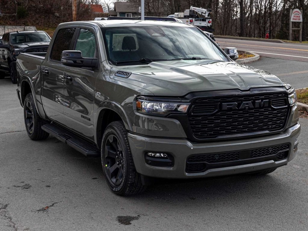 BLUE TOOTH, NAVIGATION, ALLOY WHEELS, BACK UP CAMERA, 1500 Big Horn/Lone Star, 4D Crew Cab, HEMI 5.7L V8 Multi Displacement VVT eTorque, 8-Speed Automatic, 4WD, Canyon Lake, Black w/Deluxe Cloth Bucket Seats, 115V Auxiliary Power Outlet, 115V Auxiliary Rear Power Outlet, 12" Touchscreen Display, 3 Rear Seat Head Restraints, 4 Way Front Headrests, 4-Wheel Disc Brakes, 400W Inverter, 4G LTE Wi-Fi Hot Spot, ABS brakes, Accent Color Door Handles, Accent Color Tailgate Handle, Adaptive Cruise Control, Anti-Spin Differential Rear Axle, Apple CarPlay/Android Auto, Auto High-beam Headlights, Auto Power-Folding Mirrors, Auto-Dimming Exterior Driver Mirror, Auto-Dimming Rear-View Mirror, Big Horn Level 2 Equipment Group, Black Exterior Truck Badging, Black Headlamp Bezels, Black Interior Accents, Black Painted Exterior Mirrors Caps, Black Tail Lamp Bezels, Body Color Fender Flares, Body Color Front Bumper, Brake assist, Center Console Parts Module, Cluster 12" TFT Color Display, Configurable Drive Mode, Connectivity - US/Canada, Convex Wide-Angle Exterior Mirror Insert, Deluxe Cloth Bucket Seats, Disassociated Touchscreen Display, Dual front impact airbags, Dual front side impact airbags, Electronic Stability Control, Exterior Mirrors Courtesy Lamps, Front fog lights, Front wheel independent suspension, Full Length Floor Console, Fully automatic headlights, Glove Box Lamp, GPS Antenna Input, GPS Navigation, Grille Black Surround Black Mesh, HD Radio, Heated Front Seats, Heated Steering Wheel, Illuminated entry, Integrated Center Stack Radio, Leather Wrapped Steering Wheel, LED Footwell Lighting, Low tire pressure warning, Mopar Black Tubular Side Steps, Night Edition, Occupant sensing airbag, Overhead airbag, Overhead LED Lamps, Panic alarm, ParkView Rear Back-Up Camera, Power 2-Way Driver Lumbar Adjust, Power Adjust 8-Way Driver Seat, Power Adjustable Pedals, Premium Overhead Console, Quick Order Package 27Z Big Horn, RAM Grille Badge - Black, Rear 60/40 Folding Seat, Rear Center Armrest, Rear Power Sliding Window, Rear Window Defroster, Remote keyless entry, Remote Tailgate Release, Security Alarm, SiriusXM Radio Service, Steering Wheel Mounted Audio Controls, Telescoping steering wheel, Tilt steering wheel, Traction control, Universal Garage Door Opener, USB Host Flip, Wheels: 20" x 9.0" Aluminum Painted Clad. Price includes: $3500 - 2026 National Retail Consumer Cash . Exp. 01/05/2026
