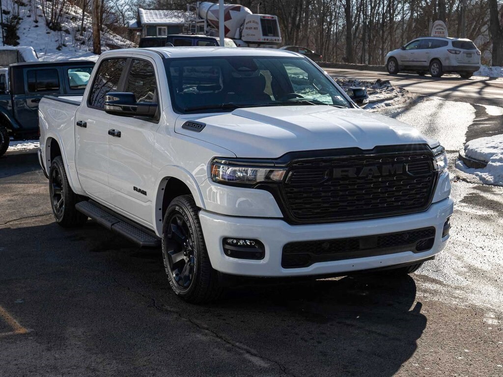 BLUE TOOTH, NAVIGATION, ALLOY WHEELS, BACK UP CAMERA, 1500 Big Horn/Lone Star, 4D Crew Cab, 3.0L I6, 8-Speed Automatic, 4WD, Bright White Clearcoat, Black w/Cloth Bucket Seats or Cloth Bench Seat or Deluxe Cloth Bucket Seats, 115V Auxiliary Power Outlet, 115V Auxiliary Rear Power Outlet, 12" Touchscreen Display, 3 Rear Seat Head Restraints, 4 Way Front Headrests, 4-Wheel Disc Brakes, 400W Inverter, 4G LTE Wi-Fi Hot Spot, ABS brakes, Accent Color Door Handles, Accent Color Tailgate Handle, Adaptive Cruise Control, Anti-Spin Differential Rear Axle, Apple CarPlay/Android Auto, Auto High-beam Headlights, Auto Power-Folding Mirrors, Auto-Dimming Exterior Driver Mirror, Auto-Dimming Rear-View Mirror, Big Horn Level 2 Equipment Group, Black Exterior Truck Badging, Black Headlamp Bezels, Black Interior Accents, Black Painted Exterior Mirrors Caps, Black Tail Lamp Bezels, Body Color Fender Flares, Body Color Front Bumper, Brake assist, Center Console Parts Module, Cluster 7.0" TFT Color Display, Configurable Drive Mode, Connectivity - US/Canada, Convex Wide-Angle Exterior Mirror Insert, Deluxe Cloth Bucket Seats, Disassociated Touchscreen Display, Dual front impact airbags, Dual front side impact airbags, Electronic Stability Control, Exterior Mirrors Courtesy Lamps, Front fog lights, Front Seat Back Map Pockets, Front wheel independent suspension, Full Length Floor Console, Fully automatic headlights, Glove Box Lamp, GPS Antenna Input, GPS Navigation, Grille Black Surround Black Mesh, HD Radio, Heated Front Seats, Heated Steering Wheel, Illuminated entry, Integrated Center Stack Radio, Leather Wrapped Steering Wheel, LED Footwell Lighting, Low tire pressure warning, Mopar Black Tubular Side Steps, Night Edition, Occupant sensing airbag, Overhead airbag, Overhead LED Lamps, Panic alarm, ParkView Rear Back-Up Camera, Power 2-Way Driver Lumbar Adjust, Power Adjust 8-Way Driver Seat, Power Adjustable Pedals, Power door mirrors, Premium Overhead Console, Quick Order Package 21Z Big Horn, RAM Grille Badge - Black, Rear 60/40 Folding Seat, Rear Center Armrest, Rear Power Sliding Window, Rear Window Defroster, Remote keyless entry, Remote Tailgate Release, Security Alarm, SiriusXM Radio Service, Steering Wheel Mounted Audio Controls, Telescoping steering wheel, Tilt steering wheel, Traction control, USB Host Flip, Wheels: 20" x 9.0" Aluminum Painted Clad. Price includes: $3500 - 2026 National Retail Consumer Cash . Exp. 01/05/2026