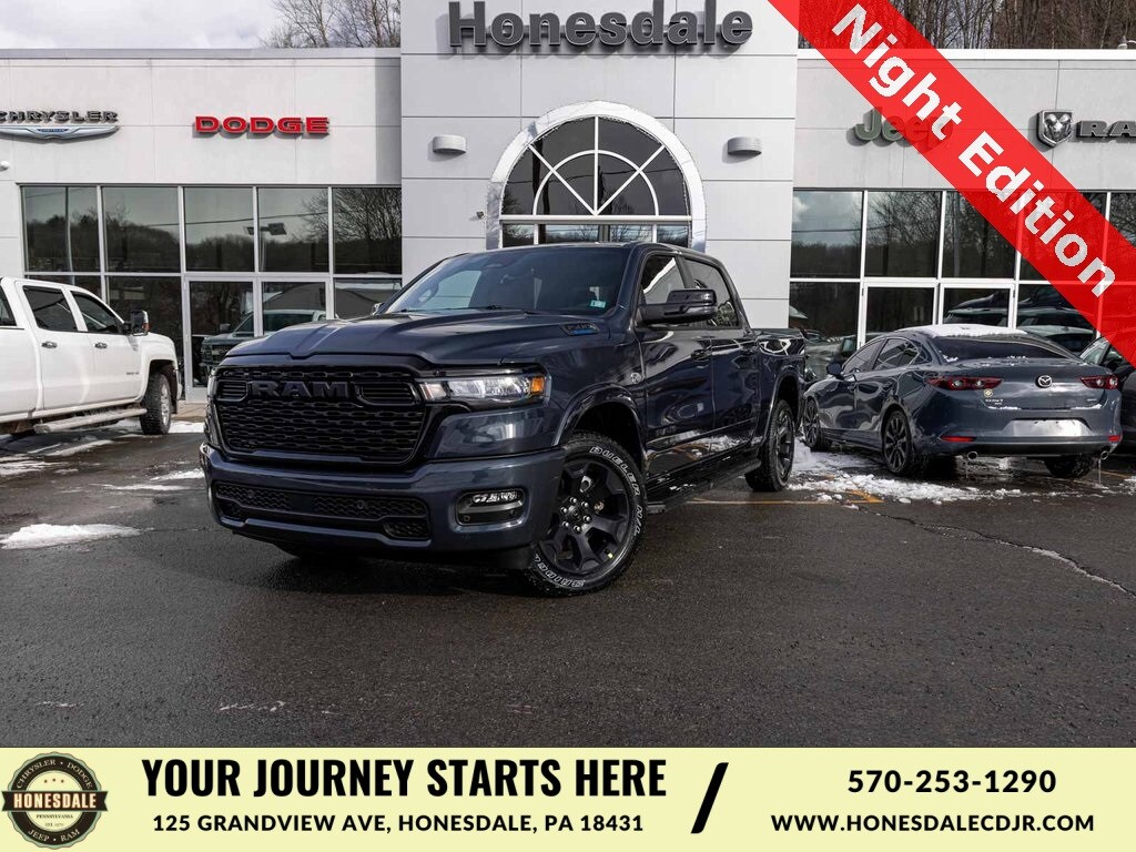 BLUE TOOTH, NAVIGATION, ALLOY WHEELS, BACK UP CAMERA, 1500 Big Horn/Lone Star, 4D Crew Cab, HEMI 5.7L V8 Multi Displacement VVT eTorque, 8-Speed Automatic, 4WD, Forged Blue Metallic, Black w/Deluxe Cloth Bucket Seats, 115V Auxiliary Power Outlet, 115V Auxiliary Rear Power Outlet, 12" Touchscreen Display, 2nd Row in Floor Storage Bins, 3 Rear Seat Head Restraints, 4 Way Front Headrests, 4-Wheel Disc Brakes, 400W Inverter, 4G LTE Wi-Fi Hot Spot, 9 Amplified Speakers with Subwoofer, ABS brakes, Accent Color Door Handles, Accent Color Premium Power Mirrors, Accent Color Tailgate Handle, Adaptive Cruise Control, Air Conditioning ATC with Dual Zone Control, Anti-Spin Differential Rear Axle, Apple CarPlay/Android Auto, Auto High-beam Headlights, Auto Power-Folding Mirrors, Auto-Dimming Exterior Driver Mirror, Auto-Dimming Rear-View Mirror, Bed Utility Group, Big Horn Level 2 Equipment Group, Black Exterior Truck Badging, Black Headlamp Bezels, Black Interior Accents, Black Painted Exterior Mirrors Caps, Black Tail Lamp Bezels, Body Color Fender Flares, Body Color Front Bumper, Body Color Rear Bumper with Step Pads, Brake assist, Center Console Parts Module, Cluster 7.0" TFT Color Display, Configurable Drive Mode, Connected Travel and Traffic Services, Connectivity - US/Canada, Convex Wide-Angle Exterior Mirror Insert, Deluxe Cloth Bucket Seats, Disassociated Touchscreen Display, Dual Exhaust with Black Tips, Dual front impact airbags, Dual front side impact airbags, Electronic Stability Control, Exterior 115V AC Outlet, Exterior Mirrors Courtesy Lamps, Exterior Mirrors with Heating Element, Exterior Mirrors with Supplemental Signals, Front fog lights, Front wheel independent suspension, Full Length Floor Console, Fully automatic headlights, Global Telematics Box Module, Glove Box Lamp, GPS Antenna Input, GPS Navigation, Grille Black Surround Black Mesh, HD Radio, Heated Front Seats, Heated Steering Wheel, Illuminated entry, Integrated Center Stack Radio, Integrated Voice Command with Bluetooth, Leather Wrapped Steering Wheel, LED Dome Lamp with on/Off Switch, LED Footwell Lighting, Low tire pressure warning, Media Hub with 2 Charge Only USBs, MOPAR 4 Adjustable Cargo Tie-Down Hooks, Mopar Black Tubular Side Steps, MOPAR Spray in Bedliner, Night Edition, Occupant sensing airbag, Overhead airbag, Panic alarm, ParkView Rear Back-Up Camera, Power 2-Way Driver Lumbar Adjust, Power Adjust 8-Way Driver Seat, Power Adjustable Pedals, Premium Overhead Console, Quick Order Package 27Z Big Horn, Radio: Uconnect 5 Navigation with 12.0" Display, RAM Grille Badge - Black, Rear 60/40 Folding Seat, Rear Center Armrest, Rear Window Defroster, Remote keyless entry, Remote Tailgate Release, Security Alarm, SiriusXM with 360L, Telescoping steering wheel, Tilt steering wheel, Traction control, Universal Garage Door Opener, USB Host Flip, Wheels: 20" x 9.0" Aluminum Painted Clad. Price includes: $3500 - 2026 National Retail Consumer Cash . Exp. 02/02/2026