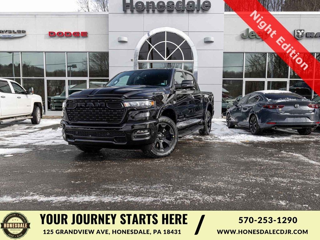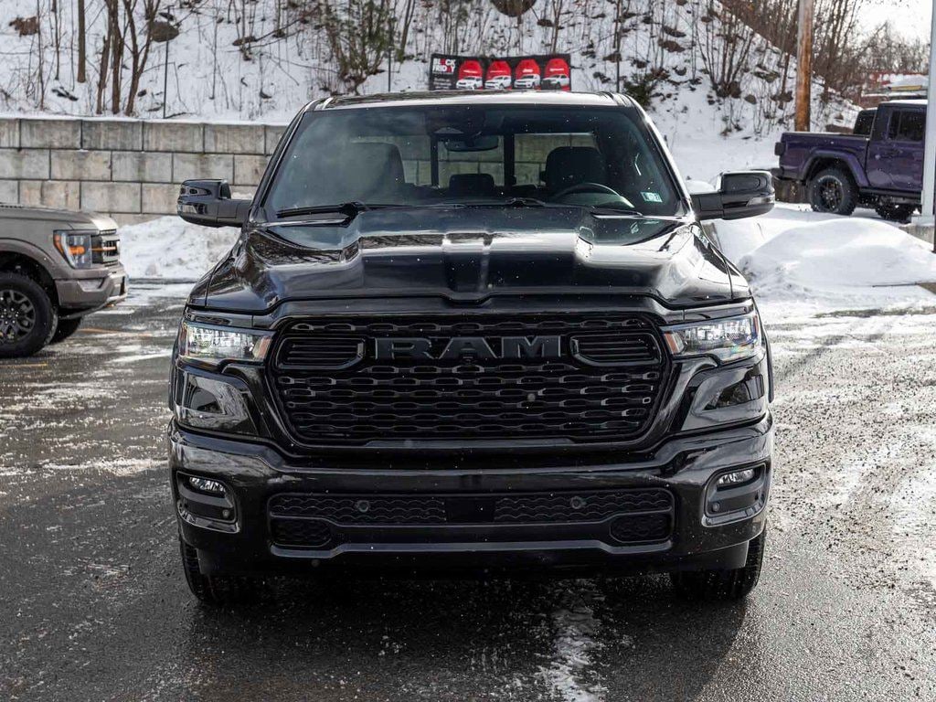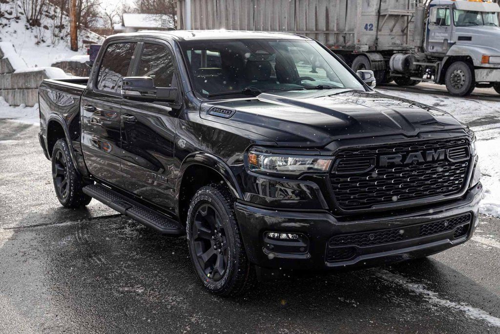 BLUE TOOTH, NAVIGATION, ALLOY WHEELS, BACK UP CAMERA, 1500 Big Horn/Lone Star, 4D Crew Cab, HEMI 5.7L V8 Multi Displacement VVT eTorque, 8-Speed Automatic, 4WD, Diamond Black Crystal Pearlcoat, Black w/Deluxe Cloth Bucket Seats, Night Edition, 115V Auxiliary Power Outlet, 2nd Row in Floor Storage Bins, 3 Rear Seat Head Restraints, 4 Way Front Headrests, 4-Wheel Disc Brakes, 400W Inverter, 4G LTE Wi-Fi Hot Spot, 9 Amplified Speakers with Subwoofer, ABS brakes, Accent Color Door Handles, Accent Color Premium Power Mirrors, Accent Color Tailgate Handle, Adaptive Cruise Control, Air Conditioning, Anti-Spin Differential Rear Axle, Apple CarPlay/Android Auto, Auto High-beam Headlights, Auto Power-Folding Mirrors, Auto-Dimming Exterior Driver Mirror, Auto-Dimming Rear-View Mirror, Big Horn Level 1 Equipment Group, Black Exterior Truck Badging, Black Headlamp Bezels, Black Interior Accents, Black Painted Exterior Mirrors Caps, Black Tail Lamp Bezels, Body Color Fender Flares, Body Color Front Bumper, Body Color Rear Bumper with Step Pads, Brake assist, Center Console Parts Module, Convex Wide-Angle Exterior Mirror Insert, Deluxe Cloth Bucket Seats, Dual Exhaust with Black Tips, Dual front impact airbags, Dual front side impact airbags, Electronic Stability Control, Exterior Mirrors Courtesy Lamps, Exterior Mirrors with Heating Element, Exterior Mirrors with Supplemental Signals, Front fog lights, Front wheel independent suspension, Full Length Floor Console, Fully automatic headlights, Glove Box Lamp, GPS Navigation, Grille Black Surround Black Mesh, Heated Front Seats, Heated Steering Wheel, Illuminated entry, Integrated Voice Command with Bluetooth, Leather Wrapped Steering Wheel, Low tire pressure warning, Mopar Black Tubular Side Steps, Occupant sensing airbag, Overhead airbag, Panic alarm, ParkView Rear Back-Up Camera, Power 2-Way Driver Lumbar Adjust, Power Adjust 8-Way Driver Seat, Power Adjustable Pedals, Quick Order Package 27Z Big Horn, Radio: Uconnect 5 W with 8.4" Display, RAM Grille Badge - Black, Rear 60/40 Folding Seat, Rear Center Armrest, Rear Dome with on/Off Switch Lamp, Rear Window Defroster, Remote keyless entry, SiriusXM Satellite Radio, Steering Wheel Mounted Audio Controls, Sun Visors with Illuminated Vanity Mirrors, Telescoping steering wheel, Tilt steering wheel, Traction control, Universal Garage Door Opener, Wheels: 20" x 9.0" Aluminum Painted Clad.