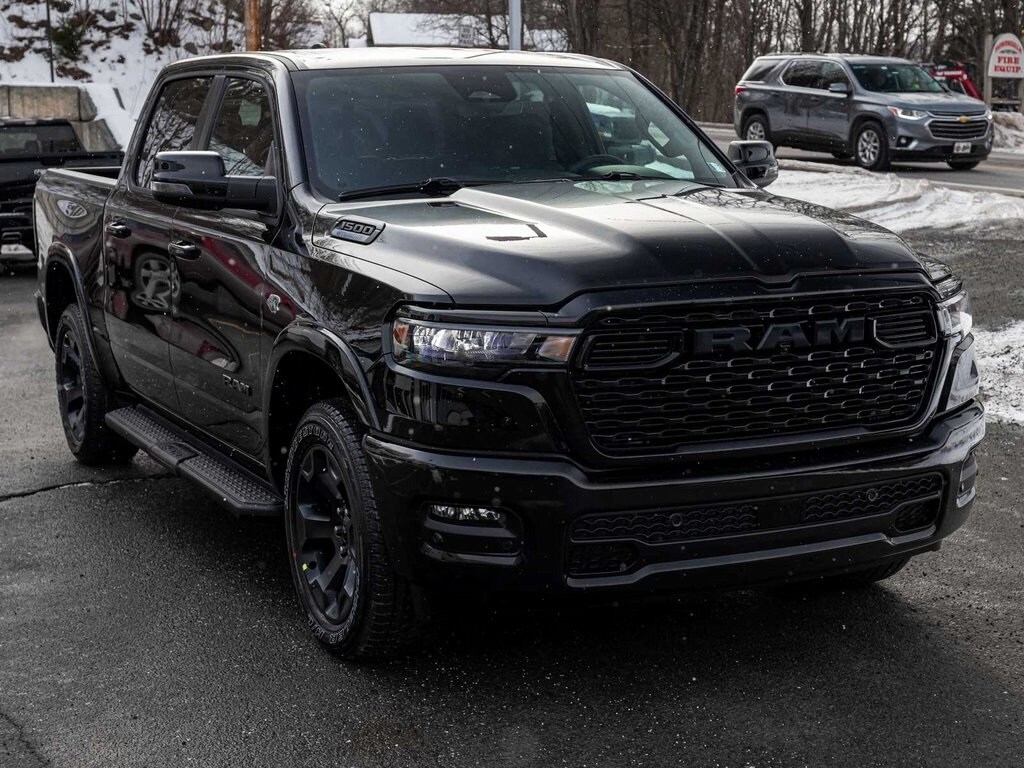 BLUE TOOTH, NAVIGATION, ALLOY WHEELS, BACK UP CAMERA, 1500 Big Horn/Lone Star, 4D Crew Cab, HEMI 5.7L V8 Multi Displacement VVT eTorque, 8-Speed Automatic, 4WD, Diamond Black Crystal Pearlcoat, Black w/Deluxe Cloth Bucket Seats, Night Edition, 115V Auxiliary Power Outlet, 2nd Row in Floor Storage Bins, 3 Rear Seat Head Restraints, 4 Way Front Headrests, 4-Wheel Disc Brakes, 400W Inverter, 4G LTE Wi-Fi Hot Spot, 9 Amplified Speakers with Subwoofer, ABS brakes, Accent Color Door Handles, Accent Color Premium Power Mirrors, Accent Color Tailgate Handle, Adaptive Cruise Control, Air Conditioning, Anti-Spin Differential Rear Axle, Apple CarPlay/Android Auto, Auto High-beam Headlights, Auto Power-Folding Mirrors, Auto-Dimming Exterior Driver Mirror, Auto-Dimming Rear-View Mirror, Big Horn Level 1 Equipment Group, Black Exterior Truck Badging, Black Headlamp Bezels, Black Interior Accents, Black Painted Exterior Mirrors Caps, Black Tail Lamp Bezels, Body Color Fender Flares, Body Color Front Bumper, Body Color Rear Bumper with Step Pads, Brake assist, Center Console Parts Module, Convex Wide-Angle Exterior Mirror Insert, Deluxe Cloth Bucket Seats, Dual Exhaust with Black Tips, Dual front impact airbags, Dual front side impact airbags, Electronic Stability Control, Exterior Mirrors Courtesy Lamps, Exterior Mirrors with Heating Element, Exterior Mirrors with Supplemental Signals, Front fog lights, Front wheel independent suspension, Full Length Floor Console, Fully automatic headlights, Glove Box Lamp, GPS Antenna Input, GPS Navigation, Grille Black Surround Black Mesh, Heated Front Seats, Heated Steering Wheel, Illuminated entry, Integrated Voice Command with Bluetooth, Leather Wrapped Steering Wheel, Low tire pressure warning, Mopar Black Tubular Side Steps, Occupant sensing airbag, Overhead airbag, Panic alarm, ParkView Rear Back-Up Camera, Power 2-Way Driver Lumbar Adjust, Power Adjust 8-Way Driver Seat, Power Adjustable Pedals, Quick Order Package 27Z Big Horn, Radio: Uconnect 5 W with 8.4" Display, RAM Grille Badge - Black, Rear 60/40 Folding Seat, Rear Center Armrest, Rear Dome with on/Off Switch Lamp, Rear Window Defroster, Remote keyless entry, SiriusXM Radio Service, SiriusXM Satellite Radio, Steering Wheel Mounted Audio Controls, Sun Visors with Illuminated Vanity Mirrors, Telescoping steering wheel, Tilt steering wheel, Traction control, Universal Garage Door Opener, Wheels: 20" x 9.0" Aluminum Painted Clad.