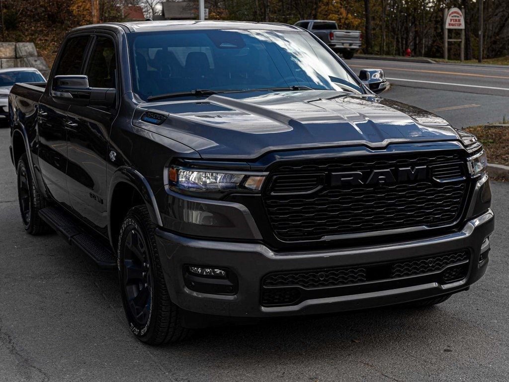 BLUE TOOTH, NAVIGATION, ALLOY WHEELS, BACK UP CAMERA, 1500 Big Horn/Lone Star, 4D Crew Cab, HEMI 5.7L V8 Multi Displacement VVT eTorque, 8-Speed Automatic, 4WD, Granite Crystal Metallic Clearcoat, Black w/Deluxe Cloth Bucket Seats, Night Edition, 115V Auxiliary Power Outlet, 115V Auxiliary Rear Power Outlet, 12" Touchscreen Display, 2nd Row In Floor Storage Bins, 3 Rear Seat Head Restraints, 4 Way Front Headrests, 4-Wheel Disc Brakes, 400W Inverter, 4G LTE Wi-Fi Hot Spot, 9 Amplified Speakers w/Subwoofer, ABS brakes, Accent Color Door Handles, Accent Color Tailgate Handle, Adaptive Cruise Control, Air Conditioning ATC w/Dual Zone Control, Anti-Spin Differential Rear Axle, Apple CarPlay/Android Auto, Auto High-beam Headlights, Auto Power-Folding Mirrors, Auto-Dimming Exterior Driver Mirror, Auto-Dimming Rear-View Mirror, Big Horn Level 2 Equipment Group, Black Exterior Truck Badging, Black Headlamp Bezels, Black Interior Accents, Black Painted Exterior Mirrors Caps, Black Tail Lamp Bezels, Body Color Fender Flares, Body Color Front Bumper, Body Color Rear Bumper w/Step Pads, Brake assist, Cluster 7.0" TFT Color Display, Configurable Drive Mode, Connected Travel & Traffic Services, Connectivity - US/Canada, Convex Wide-Angle Exterior Mirror Insert, Deluxe Cloth Bucket Seats, Disassociated Touchscreen Display, Dual Exhaust w/Black Tips, Dual front impact airbags, Dual front side impact airbags, Electronic Stability Control, Exterior Mirrors Courtesy Lamps, Exterior Mirrors w/Heating Element, Exterior Mirrors w/Supplemental Signals, Front fog lights, Front Seat Back Map Pockets, Front wheel independent suspension, Full Length Floor Console, Fully automatic headlights, Global Telematics Box Module (TBM), Glove Box Lamp, GPS Antenna Input, GPS Navigation, Grille Black Surround Black Mesh, HD Radio, Heated Front Seats, Heated Steering Wheel, Illuminated entry, Integrated Center Stack Radio, Integrated Voice Command w/Bluetooth, Leather Wrapped Steering Wheel, LED Dome Lamp w/On/Off Switch, LED Footwell Lighting, Low tire pressure warning, Media Hub w/2 Charge Only USBs, Mopar Black Tubular Side Steps, Occupant sensing airbag, Overhead airbag, Overhead LED Lamps, Panic alarm, ParkView Rear Back-Up Camera, Power 2-Way Driver Lumbar Adjust, Power Adjust 8-Way Driver Seat, Power Adjustable Pedals, Power door mirrors, Premium Overhead Console, Quick Order Package 27Z Big Horn, Radio: Uconnect 5 Nav w/12.0" Display, RAM Grille Badge - Black, Rear 60/40 Folding Seat, Rear Center Armrest, Rear Window Defroster, Remote keyless entry, Remote Tailgate Release, Secondary Active Grille Shutters, Security Alarm, SiriusXM Radio Service, SiriusXM w/360L, Steering Wheel Mounted Audio Controls, Sun Visors w/Illuminated Vanity Mirrors, Telescoping steering wheel, Tilt steering wheel, Traction control, Universal Garage Door Opener, USB Host Flip, Wheels: 20" x 9.0" Aluminum Painted Clad, Wireless Charging Pad. Price includes: $3500 - 2026 National Retail Consumer Cash . Exp. 12/01/2025