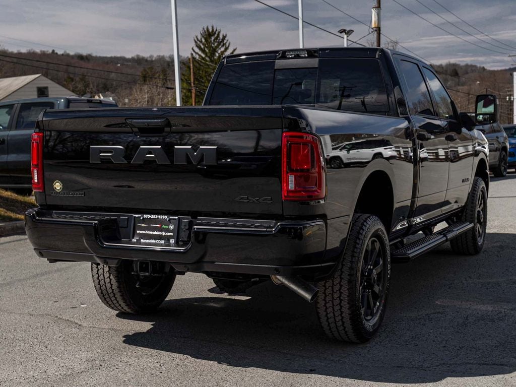 BLUE TOOTH, NAVIGATION, ALLOY WHEELS, BACK UP CAMERA, Transfer Case Skid Plate Shield, 2500 Big Horn, 4D Crew Cab, 6.4L V8, 8-Speed Automatic, 4WD, Diamond Black Crystal Pearlcoat, Black w/Premium Cloth Bucket Seats, 115-Volt Auxiliary Front Power Outlet, 115V Auxiliary Rear Power Outlet, 12" Touchscreen Display, 2 Way Rear Headrest Seat, 4 Way Front Headrests, 4-Wheel Disc Brakes, 400W Inverter, 4G LTE Wi-Fi Hot Spot, 9 Alpine Speakers with Subwoofer, ABS brakes, Active Lane Management System, Adaptive Cruise Control, Adaptive Steering System, Air Conditioning ATC with Dual Zone Control, Alexa Built-in, Anti-Spin Differential Rear Axle, Apple CarPlay/Android Auto, Auto High Beam Headlamp Control, Auto Power-Folding Mirrors, Auto-Dimming Rear-View Mirror, Big Horn Level 2 Plus Equipment Group, Black Exterior Mirrors, Black Exterior Truck Badging, Black Interior Accents, Black Wheel Center Hub, Blind Spot and Cross Path Detection, Body Color Grille-Surround, Brake assist, Center Stop Lamp with Cargo View Camera, Cluster 7.0" TFT Color Display, Dampened Tailgate, Disassociated Touchscreen Display, Drowsy Driver Detection, Dual front impact airbags, Dual front side impact airbags, Dual Glove Boxes, Dual Wireless Charging Pad, Electronic Stability Control, Emergency Vehicle Alert System (EVAS), Exterior 115V AC Outlet, Exterior Mirrors Courtesy Lamps, Exterior Mirrors with Supplemental Signals, Folding Flat Load Floor Storage, Footwell Courtesy Lamp, Front fog lights, Full Length Upgraded Floor Console, Fully automatic headlights, Gloss Black Nostrils/Mic Black Grille, GPS Antenna Input, GPS Navigation, HD Radio, Heated Front Seats, Heated Steering Wheel, Illuminated entry, Integrated Voice Command with Bluetooth, LED Bed Lighting, LED Tail Lamps, Locking Lower Glove Box, Low tire pressure warning, Luxury Steering Wheel, Media Hub with 2 Charge Only USBs, Mirror Running Lights, MOPAR Deployable Bed Step, MOPAR Spray in Bedliner, Night Edition, Occupant sensing airbag, Overhead airbag, Painted Flat Wheel-to-Wheel Side Steps, Painted Front Bumper, Painted Rear Bumper, Panic alarm, ParkView Rear Back-Up Camera, Power 2-Way Driver Lumbar Adjust, Power Adjust 8-Way Driver Seat, Power Adjustable Pedals, Power Heated Folding Telescopic Mirrors, Power-Adjustable Convex Aux Mirrors, Premium Cloth Bucket Seats, Quick Order Package 2UZ Big Horn, Radio: Uconnect 5 Navigation with 12.0" Display, Rain Sensitive Windshield Wipers, Rear 60/40 Folding Seat, Rear Dome with on/Off Switch Lamp, Rear Power Sliding Window, Rear window defroster, Red Tail Lamp Bezels, Remote keyless entry, Remote Start System, Security system, Selectable Tire Fill Alert, SiriusXM with 360L, Surround View Camera System, Tilt steering wheel, Traction control, Traffic Sign Recognition, Trailer Reverse Guidance, Trailer Tire Pressure Monitoring System, Trailer Tow Pages, Universal Garage Door Opener, Wheels: 20" x 8.0" Black Painted Aluminum. Price includes: $1000 - 2026 National Bonus Cash . Exp. 04/30/2026