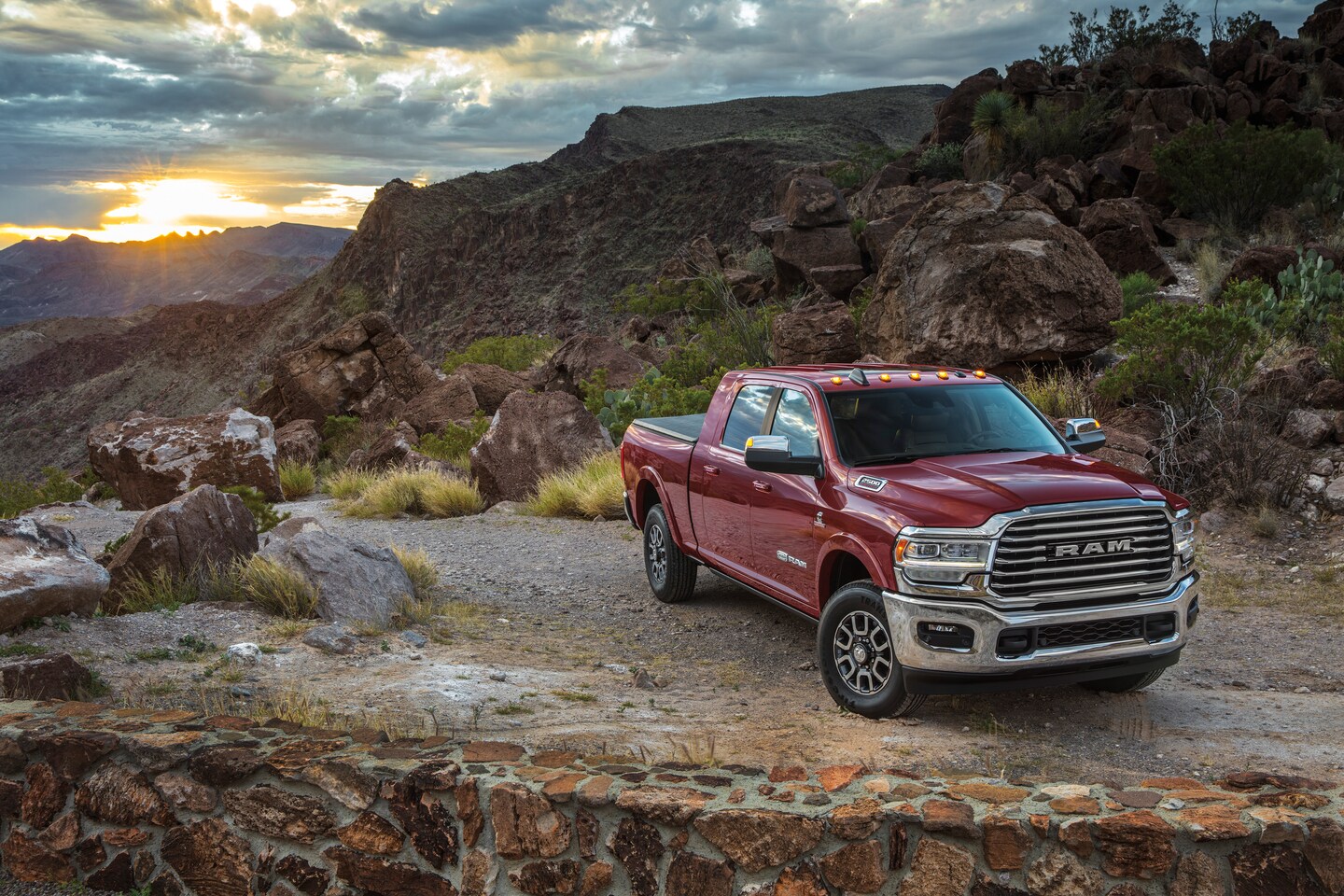 The bold exterior of the Ram 2500 features a sculpted hood, prominent grille, and full LED lighting. Power running boards, a spray-in bed liner, and the innovative MOPAR RamBox cargo management system make accessing and securing your gear a breeze. With a maximum approach angle of up to 23.3 degrees, ground clearance up to 12.1 inches, and a 35-inch water fording capability, the new Power Wagon is trail-ready. Equip your Ram 2500 with a front-mounted winch, front and rear locking differentials, and an electronic disconnect front sway bar for ultimate off-road capability. The new Ram 2500 is designed to make a statement wherever you go.