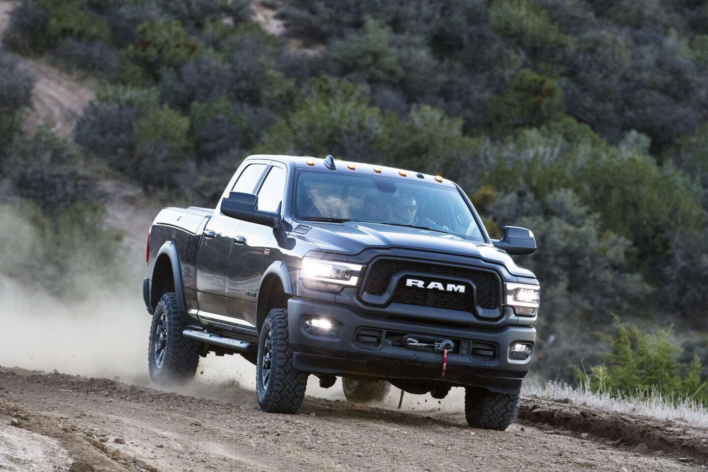 • Power Wagon: Features a disconnecting front sway bar, front & rear locking differentials, performance-tuned shocks, underbody skid plates, a factory lift kit, and 33-inch all-terrain tires.