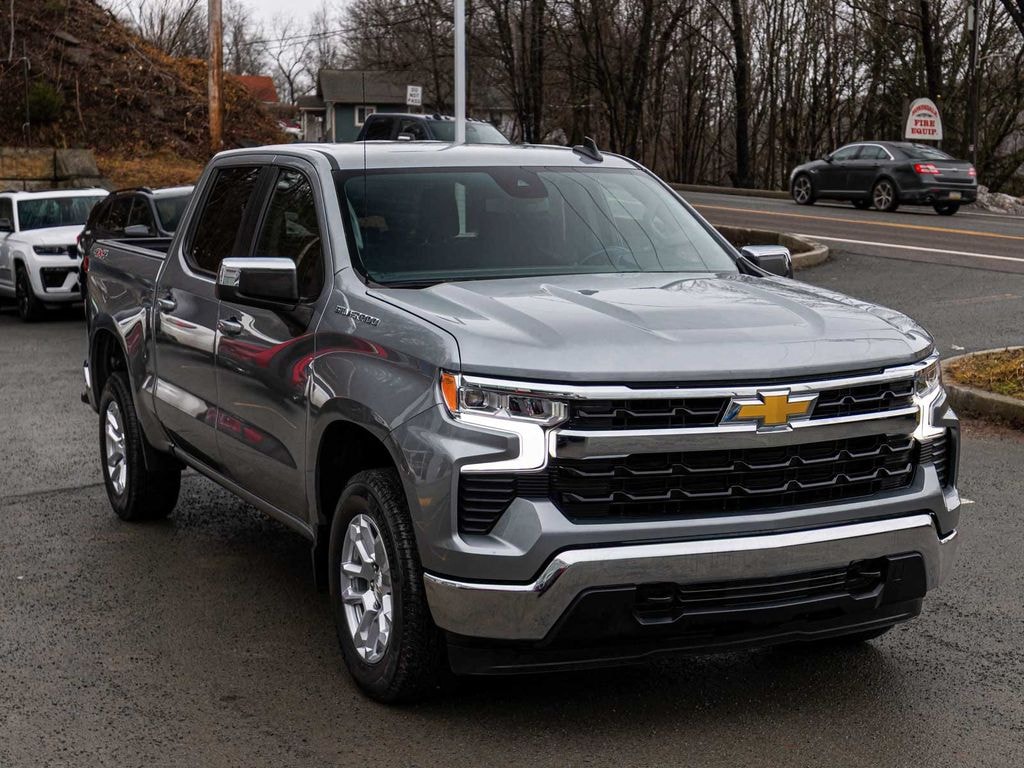 2023 Chevrolet Silverado 1500 LT ONE OWNER, BLUE TOOTH, NEW PA STATE INSPECTION, FULLY RECONDITIONED, NAVIGATION, ALLOY WHEELS, BACK UP CAMERA, Silverado 1500 LT, 4D Crew Cab, 2.7L Turbo, 8-Speed Automatic, 4WD, Sterling Gray Metallic, Jet Black w/Cloth Seat Trim, 10-Way Power Driver Seat w/Lumbar, 12.3" Multicolor Reconfigurable Digital Display, 4-Wheel Disc Brakes, 40/20/40 Front Split-Bench Seat, 6-Speaker Audio System, ABS brakes, All-Star Edition, Apple CarPlay/Android Auto, Auto-Locking Rear Differential, Automatic Emergency Braking, Bluetooth® For Phone, Brake assist, Chevrolet Connected Access Capable, Chrome Mirror Caps, Color-Keyed Carpeting Floor Covering, Convenience Package, Dual front impact airbags, Dual front side impact airbags, Dual Rear USB Ports (Charge Only), Dual-Zone Automatic Climate Control, Electric Rear-Window Defogger, Electrical Steering Column Lock, Electronic Cruise Control, Electronic Stability Control, Following Distance Indicator, Forward Collision Alert, Front Frame-Mounted Black Recovery Hooks, Front Pedestrian Braking, Front wheel independent suspension, Fully automatic headlights, HD Rear Vision Camera, Heated door mirrors, Heated Driver & Front Outboard Passenger Seats, Heated Steering Wheel, Hitch Guidance, Illuminated entry, IntelliBeam Automatic High Beam On/Off, Keyless Open & Start, Lane Keep Assist w/Lane Departure Warning, LED Cargo Area Lighting, Low tire pressure warning, Navigation System, Occupant sensing airbag, OnStar & Chevrolet Connected Services Capable, Overhead airbag, Power door mirrors, Preferred Equipment Group 2FL, Radio: Chevrolet Infotainment 3 Premium System, Rear 60/40 Folding Bench Seat (Folds Up), Remote keyless entry, Remote Vehicle Starter System, SiriusXM w/360L, Standard Suspension Package, Steering Wheel Audio Controls, Telescoping steering wheel, Theft Deterrent System (Unauthorized Entry), Tilt steering wheel, Traction control, Trailering Package, Wheels: 18" x 8.5" Bright Silver Painted Aluminum, Wi-Fi Hot Spot Capable, Wireless Phone Projection, Wrapped Steering Wheel.
