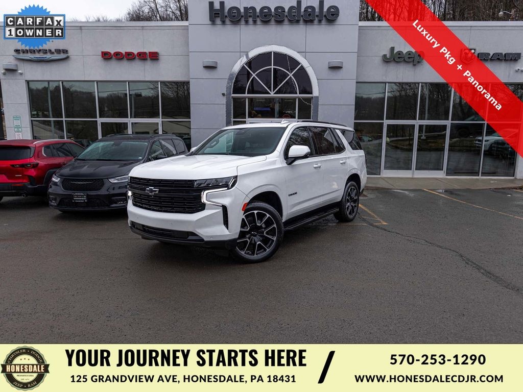 2023 Chevrolet Tahoe RST Recent Arrival! ONE OWNER, BLUE TOOTH, NEW PA STATE INSPECTION, FULLY RECONDITIONED, NAVIGATION, ALLOY WHEELS, PANORAMIC SUNROOF, LEATHER, BACK UP CAMERA, Tahoe RST, 4D Sport Utility, EcoTec3 5.3L V8, 10-Speed Automatic with Overdrive, 4WD, Iridescent Pearl Tricoat, Jet Black/Victory Red w/Perforated Leather Seat Trim, Luxury Package, 10-Way Power Driver & Passenger Seat Adjusters, 1st & 2nd Row Color-Keyed Carpeted Floor Mats, 3rd Row 60/40 Power-Folding Split-Bench Seat, 4-Wheel Disc Brakes, ABS brakes, Adaptive Cruise Control, Apple CarPlay/Android Auto, Auto High-beam Headlights, Auto-Dimming Inside Rear-View Mirror, Automatic temperature control, Bose 9-Speaker Stereo Audio System Feature, Brake assist, Bright Front & Rear Door Sill Plates, Color-Keyed Carpeting Floor Covering, Driver & Front Outboard Passenger Airbags, Driver Alert Package, Dual front impact airbags, Dual front side impact airbags, Electronic Stability Control, Enhanced Automatic Emergency Braking, Enhanced Driver Information Center, Floor Console w/Storage Area, Four wheel independent suspension, Front dual zone A/C, Front High-Back Reclining Bucket Seats, Fully automatic headlights, Garage door transmitter, Hands-Free Rear Power Programmable Liftgate, HD Surround Vision, Heated 2nd Row Outboard Seats, Heated Driver & Front Passenger Seats, Heated Steering Wheel, Illuminated entry, Infotainment Display, Lane Change Alert w/Side Blind Zone Alert, LED Daytime Running Lamps, Low tire pressure warning, Memory Settings for Driver, Navigation System, Occupant sensing airbag, Outside Heated Power-Adjustable Mirrors, Overhead airbag, Perforated Leather Seat Trim, Power Panoramic Sunroof, Power Release 2nd Row Bucket Seats, Power Tilt & Telescopic Steering Column, Preferred Equipment Group 1SP, Premium Smooth Ride Suspension, Radio: Chevrolet Infotainment 3 Premium System, Rear air conditioning, Rear Cross Traffic Alert, Rear Pedestrian Alert, Rear window defroster, Remote keyless entry, Remote Start, Security system, Set of 4 Wheel Locks (LPO), SiriusXM Radio w/360L, Traction control, Universal Home Remote, Wheels: 22" x 9" Bright Machined, Wireless Charging, Wrapped Steering Wheel.