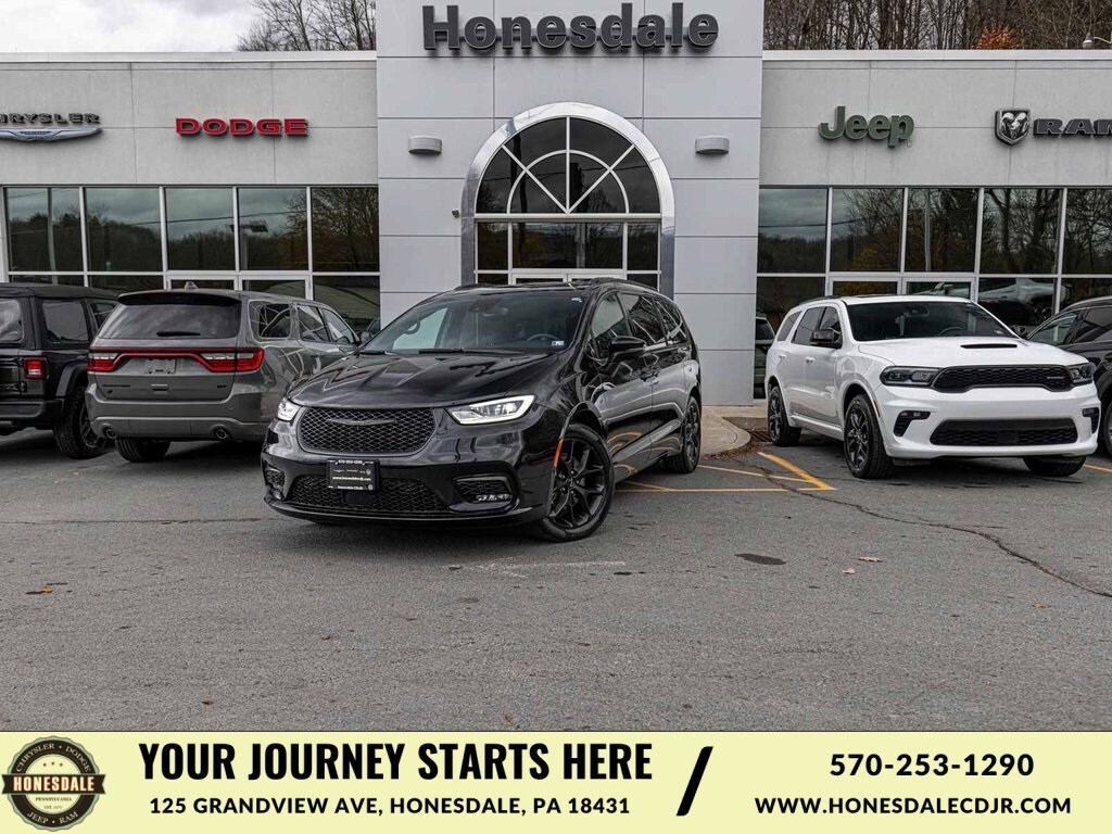 2023 Chrysler Pacifica Touring L Recent Arrival! ONE OWNER, BLUE TOOTH, NEW PA STATE INSPECTION, FULLY RECONDITIONED, NAVIGATION, ALLOY WHEELS, BACK UP CAMERA, Pacifica Touring L, 4D Passenger Van, 3.6L V6 24V VVT, 9-Speed 948TE Automatic, FWD, Brilliant Black Crystal Pearlcoat, Black w/Caprice Leatherette Bucket Seats w/S Logo, S Appearance Package, 10.1" Touchscreen Display, 360 Surround View Camera System, 3rd row seats: split-bench, 4-Wheel Disc Brakes, 6 Speakers, ABS brakes, Adaptive Cruise Control, AM/FM radio: SiriusXM, Anodized Ice Cave Accents, Anodized Ink Badging, Apple CarPlay/Android Auto, Audio memory, Automatic temperature control, Black Day Light Opening Moldings, Black Stow 'N Place Roof Rack, Brake assist, Caprice Leatherette Bucket Seats w/S Logo, Dual front impact airbags, Dual front side impact airbags, Electronic Stability Control, Four wheel independent suspension, Front dual zone A/C, Front fog lights, Fully automatic headlights, GPS Antenna Input, Heated door mirrors, Heated front seats, Heated steering wheel, Illuminated entry, Integrated Active Noise Cancellation, Integrated Center Stack Radio, Knee airbag, Low tire pressure warning, Memory seat, Occupant sensing airbag, Overhead airbag, Panic alarm, Parallel & Perpendicular Park Assist w/Stop, ParkSense Front/Rear Park Assist w/Stop, Piano Black Interior Accents, Power door mirrors, Power driver seat, Power Liftgate, Premium Fascia Upper/Lower Grille w/Black Surround, Premium Rear Fascia Black, Quick Order Package 27L, Radio: Uconnect 5 w/10.1" Display, Rear window defroster, Reclining 3rd row seat, Remote keyless entry, S Badge, Safety Sphere, Security system, Telescoping steering wheel, Tilt steering wheel, Touring Suspension, Traction control, Turn signal indicator mirrors, Wheels: 20" x 7.5" S-Model Aluminum Design 1. 19/28 City/Highway MPG Odometer is 35942 miles below market average!