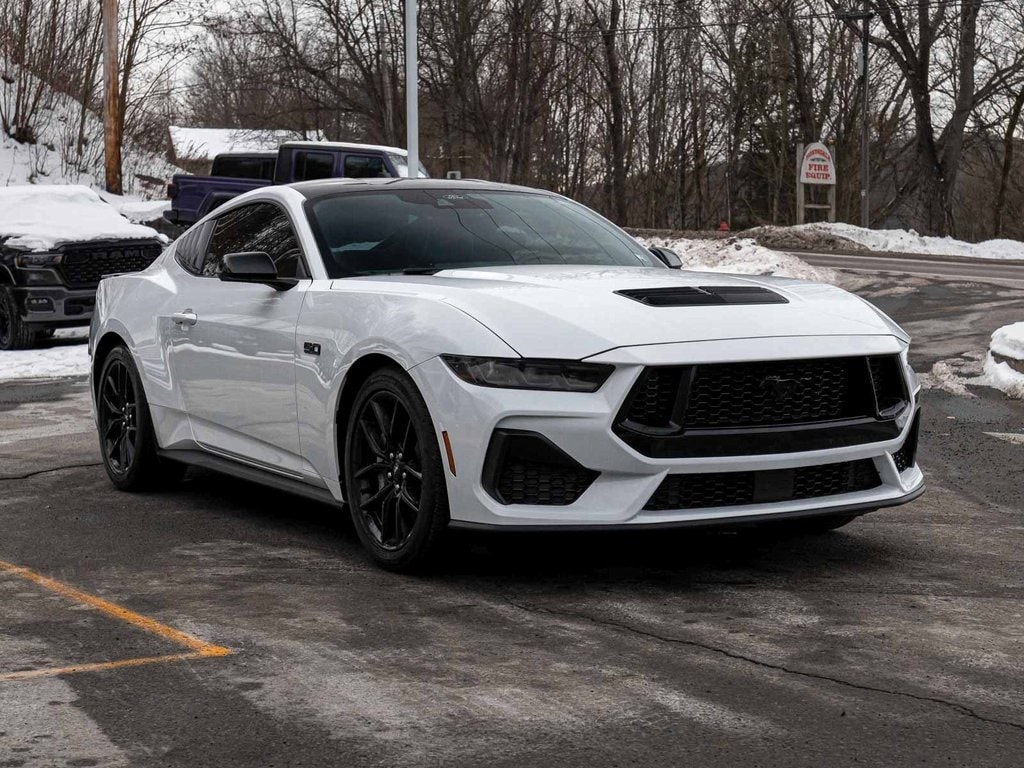 2025 Ford Mustang GT Premium CLEAN CARFAX, ONE OWNER, BLUE TOOTH, NEW PA STATE INSPECTION, FULLY RECONDITIONED, NAVIGATION, ALLOY WHEELS, LEATHER, BACK UP CAMERA, Mustang GT Premium, 2D Coupe, 5.0L V8 Ti-VCT, 10-Speed Automatic, RWD, Oxford White, Black Onyx w/Leather-Trimmed Bucket Seats, 4-Wheel Disc Brakes, 9 Speakers, ABS brakes, Alloy wheels, AM/FM Stereo, Auto High-beam Headlights, Auto-dimming Rear-View mirror, Automatic temperature control, Black GT Pony Badges, Black Mirror Caps, Brake assist, Climate Controlled Heated/Cooled Front Seats, Compass, Cruise control, Dual front impact airbags, Dual front side impact airbags, Electronic Stability Control, Exterior Parking Camera Rear, Four wheel independent suspension, Front dual zone A/C, Fully automatic headlights, Garage door transmitter, HD Radio, Headlamps w/Black Bezels, Heated door mirrors, Heated front seats, Heated steering wheel, Illuminated entry, Knee airbag, Leather Shift Knob, Leather steering wheel, Leather-Trimmed Bucket Seats, Low tire pressure warning, Mustang Nite Pony Package, Occupant sensing airbag, Overhead airbag, Painted Black Roof, Power door mirrors, Power driver seat, Power passenger seat, Rain sensing wipers, Rear Parking Sensors, Rear window defroster, Remote keyless entry, SiriusXM w/360L, Sport steering wheel, SYNC 4, Telescoping steering wheel, Tilt steering wheel, Traction control, Turn signal indicator mirrors, Ventilated front seats, Wheels: 19" x 8.5" Ebony Black-Painted Aluminum. Odometer is 2592 miles below market average!