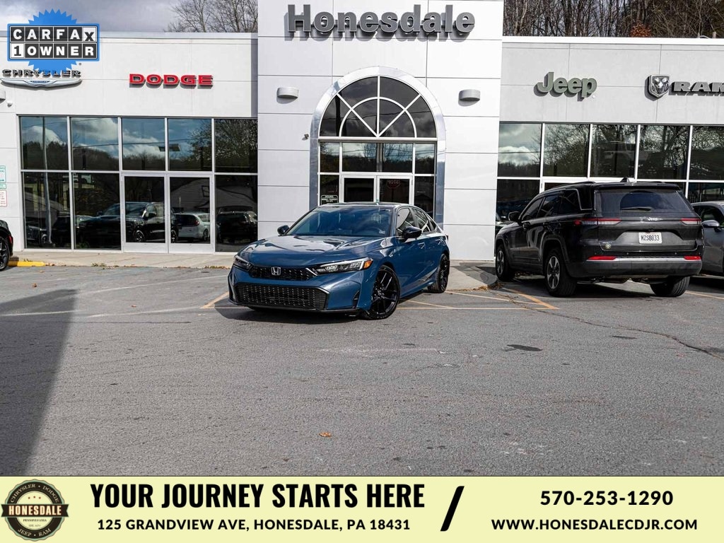 2025 Honda Civic Sport ONE OWNER, BLUE TOOTH, NEW PA STATE INSPECTION, FULLY RECONDITIONED, NAVIGATION, ALLOY WHEELS, BACK UP CAMERA, Civic Sport, 4D Sedan, 2.0L I4 DOHC 16V, CVT, FWD, Blue Lagoon Pearl, Black w/Cloth/Leatherette Seating Surfaces, 4-Wheel Disc Brakes, 8 Speakers, ABS brakes, Adaptive Cruise Control: Adaptive Cruise Control (ACC) with Low-Speed Follow, Air Conditioning, Apple CarPlay/Android Auto, Auto High-beam Headlights, Automatic temperature control, Blind Spot Information (BSI) System warning, Brake assist, Cloth/Leatherette Seating Surfaces, Dual front impact airbags, Dual front side impact airbags, Electronic Stability Control, Exterior Parking Camera Rear, Four wheel independent suspension, Fully automatic headlights, Heated door mirrors, Illuminated entry, Knee airbag, Leather Shift Knob, Leather steering wheel, Low tire pressure warning, Occupant sensing airbag, Overhead airbag, Power door mirrors, Radio: 180-Watt Audio System, Rear side impact airbag, Rear window defroster, Remote keyless entry, Security system, Speed-sensing steering, Telescoping steering wheel, Tilt steering wheel, Traction control, Wheels: 18" Gloss Black Alloy. 31/39 City/Highway MPG