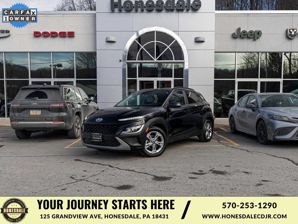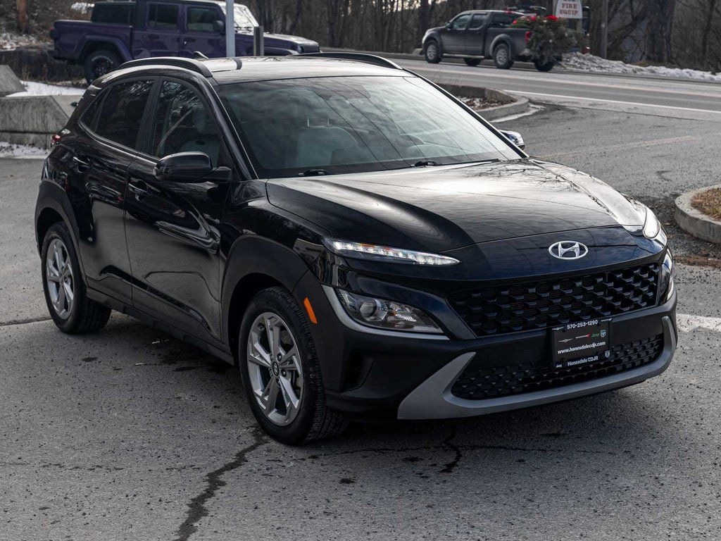 2023 Hyundai Kona SEL ONE OWNER, BLUE TOOTH, NEW PA STATE INSPECTION, FULLY RECONDITIONED, NAVIGATION, ALLOY WHEELS, BACK UP CAMERA, Kona SEL, 4D Sport Utility, 2.0L I4 DOHC Dual CVVT, CVT, AWD, Abyss Black Pearl, Gray w/Cloth Seat Trim, 17" x 7.0J Alloy Wheels, 4-Wheel Disc Brakes, 6 Speakers, ABS brakes, Air Conditioning, Apple CarPlay & Android Auto, Brake assist, Cruise control, Dual front impact airbags, Dual front side impact airbags, Electronic Stability Control, Exterior Parking Camera Rear, Four wheel independent suspension, Fully automatic headlights, Heated door mirrors, Illuminated entry, Low tire pressure warning, Navigation System, Occupant sensing airbag, Option Group 01, Overhead airbag, Panic alarm, Power door mirrors, Power driver seat, Radio: AM/FM/HD/SiriusXM Audio System, Rear window defroster, Remote keyless entry, Security system, Speed-sensing steering, Telescoping steering wheel, Tilt steering wheel, Traction control, Turn signal indicator mirrors. 28/33 City/Highway MPG Odometer is 8205 miles below market average!