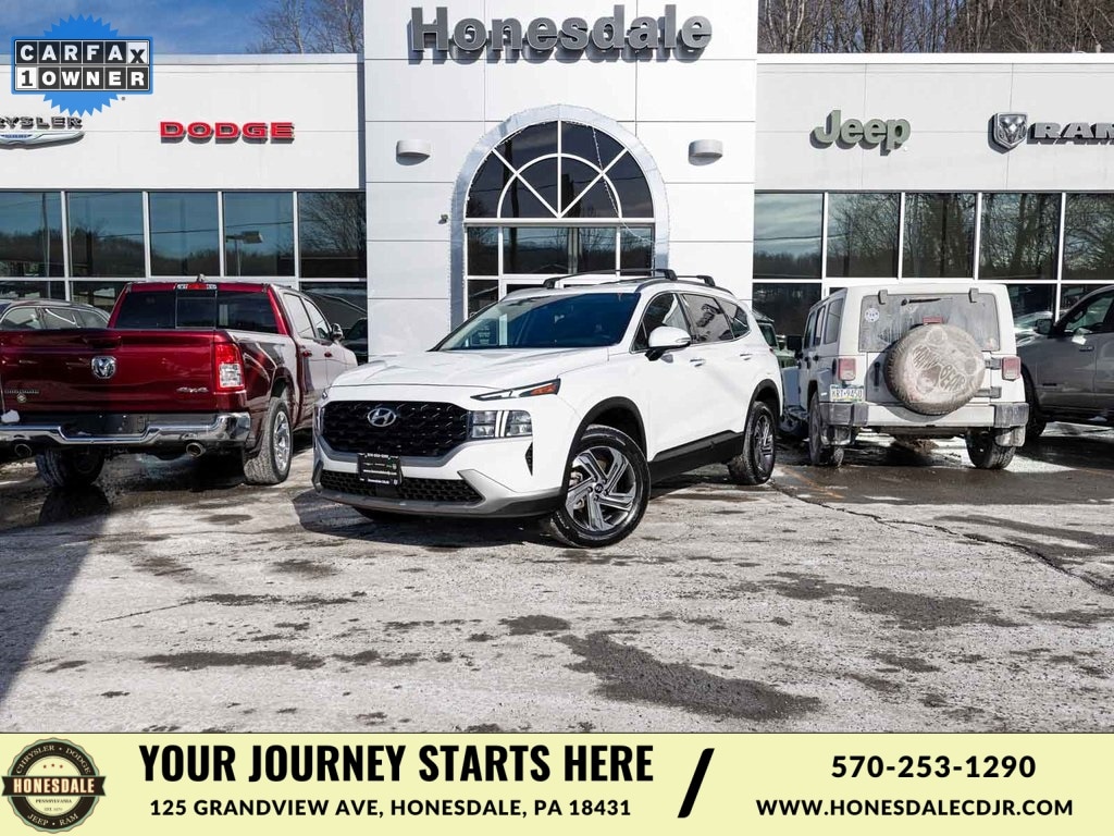 2023 Hyundai Santa Fe SEL ONE OWNER, BLUE TOOTH, NEW PA STATE INSPECTION, FULLY RECONDITIONED, NAVIGATION, ALLOY WHEELS, BACK UP CAMERA, Santa Fe SEL, 4D Sport Utility, 2.5L I4, 8-Speed Automatic with SHIFTRONIC, AWD, Serenity White Pearl, Black w/Stain-Resistant Cloth Seat Trim, 18" x 7.5J Alloy Wheels, 4-Wheel Disc Brakes, 6 Speakers, ABS brakes, Adaptive Cruise Control, AM/FM radio: SiriusXM, Apple CarPlay & Android Auto, Auto High-beam Headlights, Automatic temperature control, Brake assist, Dual front impact airbags, Dual front side impact airbags, Electronic Stability Control, Exterior Parking Camera Rear, Four wheel independent suspension, Front dual zone A/C, Fully automatic headlights, Heated door mirrors, Heated Front Bucket Seats, Illuminated entry, Leather steering wheel, Low tire pressure warning, Navigation System, Occupant sensing airbag, Option Group 01, Overhead airbag, Panic alarm, Power door mirrors, Power driver seat, Power Liftgate, Radio: AM/FM Display Audio, Rear window defroster, Remote keyless entry, Roof Rack Cross Bars (DISC), Security system, Speed-sensing steering, Stain-Resistant Cloth Seat Trim, Telescoping steering wheel, Tilt steering wheel, Traction control, Turn signal indicator mirrors. Odometer is 6967 miles below market average!