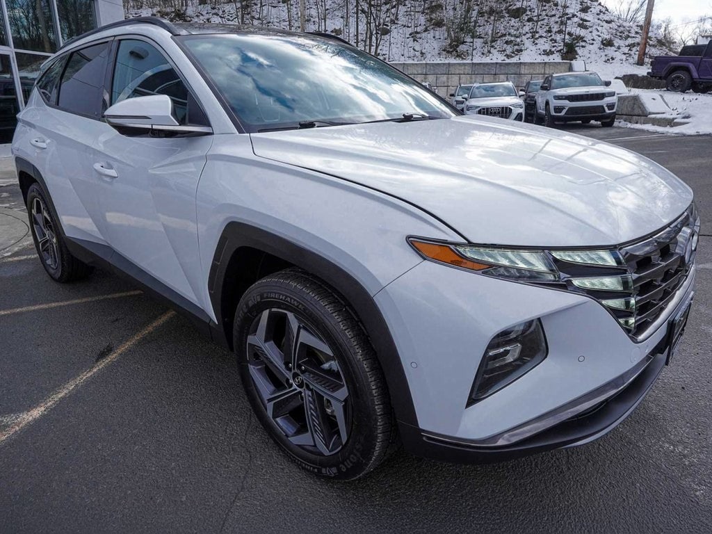 2024 Hyundai Tucson Plug-In Hybrid Limited ONE OWNER, BLUE TOOTH, NEW PA STATE INSPECTION, FULLY RECONDITIONED, NAVIGATION, ALLOY WHEELS, PANORAMIC SUNROOF, LEATHER, BACK UP CAMERA, Tucson Plug-In Hybrid Limited, 4D Sport Utility, I4, 6-Speed Automatic, AWD, White Pearl, Black w/Leather Seat Trim, 4-Wheel Disc Brakes, 8 Speakers, ABS brakes, Adaptive Cruise Control, AM/FM radio: SiriusXM, Apple CarPlay & Android Auto, Auto High-beam Headlights, Auto-dimming Rear-View mirror, Automatic temperature control, Brake assist, Dual front impact airbags, Dual front side impact airbags, Electronic Stability Control, Exterior Parking Camera Rear, Four wheel independent suspension, Front dual zone A/C, Fully automatic headlights, Garage door transmitter: HomeLink, Heated & Ventilated Front Bucket Seats, Heated door mirrors, Heated rear seats, Heated steering wheel, Illuminated entry, Leather Seat Trim, Low tire pressure warning, Memory seat, Navigation System, Occupant sensing airbag, Option Group 01, Overhead airbag, Panic alarm, Power door mirrors, Power driver seat, Power Liftgate, Power passenger seat, Radio: Bose Premium w/AM/FM/HD Audio System, Rear side impact airbag, Rear window defroster, Remote keyless entry, Security system, Telescoping steering wheel, Tilt steering wheel, Traction control, Turn signal indicator mirrors, Wheels: 19" x 7.5J Alloy.