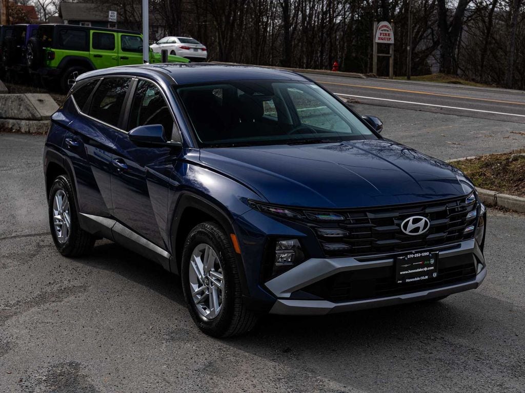 2025 Hyundai Tucson SE CLEAN CARFAX, ONE OWNER, BLUE TOOTH, NEW PA STATE INSPECTION, FULLY RECONDITIONED, NAVIGATION, ALLOY WHEELS, BACK UP CAMERA, Tucson SE, 4D Sport Utility, 2.5L I4 DGI DOHC 16V LEV3-SULEV30 187hp, 8-Speed Automatic with SHIFTRONIC, AWD, Atlantis Blue, Black w/Stain and Odor Resistant Cloth Seat Trim, 17" Alloy Wheels, 4-Wheel Disc Brakes, 6 Speakers, ABS brakes, Adaptive Cruise Control, Air Conditioning, AM/FM radio: SiriusXM, Apple CarPlay & Android Auto, Auto High-beam Headlights, Brake assist, Dual front impact airbags, Dual front side impact airbags, Electronic Stability Control, Four wheel independent suspension, Front Bucket Seats, Fully automatic headlights, Illuminated entry, Low tire pressure warning, Occupant sensing airbag, Option Group 01, Overhead airbag, Panic alarm, Power door mirrors, Radio: AM/FM/HD Audio System, Rear side impact airbag, Rear window defroster, Remote keyless entry, Security system, Stain & Odor Resistant Cloth Seat Trim, Telescoping steering wheel, Tilt steering wheel, Traction control. 24/30 City/Highway MPG