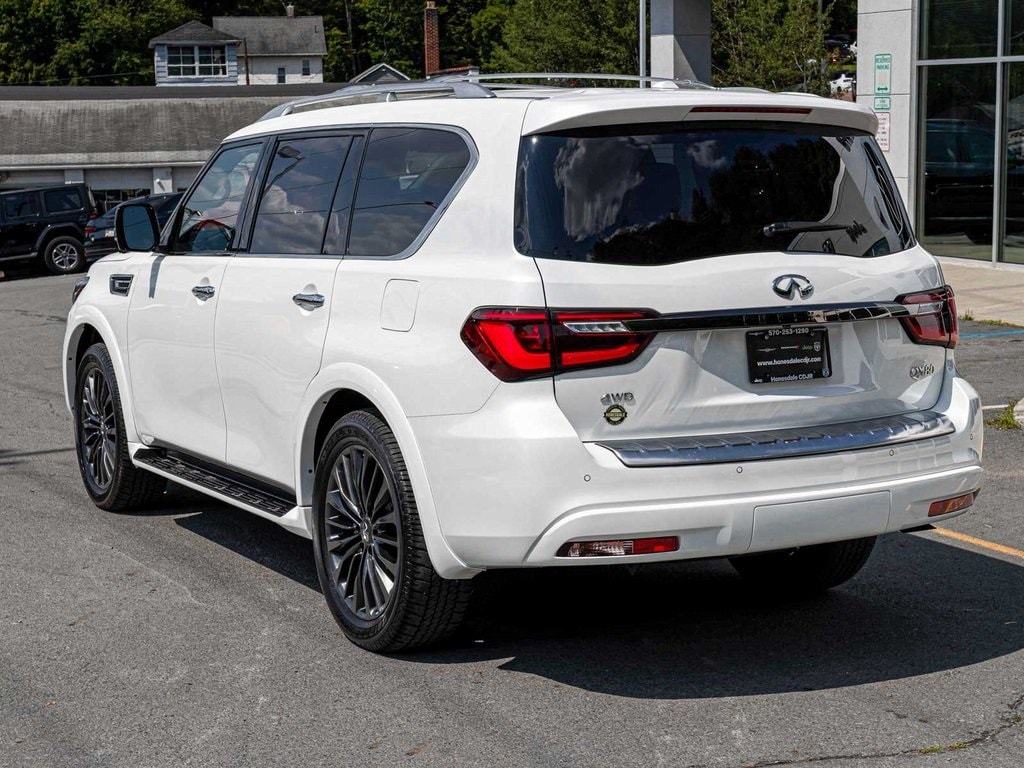 2024 INFINITI QX80 Sensory CLEAN CARFAX, ONE OWNER, BLUE TOOTH, NEW PA STATE INSPECTION, FULLY RECONDITIONED, NAVIGATION, ALLOY WHEELS, SUNROOF/MOONROOF, LEATHER, BACK UP CAMERA, QX80 Sensory, 4D Sport Utility, 5.6L V8, 7-Speed Automatic, 4WD, Moonstone White, Saddle Brown w/Perforated Semi-Aniline Leather-Appointed Seats, 3rd row seats: bench, 4-Wheel Disc Brakes, ABS brakes, Adaptive Cruise Control, AM/FM radio: SiriusXM, Anti-whiplash front head restraints, Apple CarPlay/Android Auto, Auto High-beam Headlights, Auto tilt-away steering wheel, Auto-dimming door mirrors, Auto-dimming Rear-View mirror, Auto-leveling suspension, Automatic temperature control, Black Painted Mirror Caps, Brake assist, Climate Controlled Front Bucket Seats, Dark Chrome Front Fascia Trim, Dark Chrome Grille Surround, Dual front impact airbags, Dual front side impact airbags, Electronic Stability Control, Four wheel independent suspension, Front dual zone A/C, Front fog lights, Fully automatic headlights, Garage door transmitter: HomeLink, Heated door mirrors, Heated front seats, Heated rear seats, Heated steering wheel, Illuminated entry, INFINITI Radiant Illuminated Cargo Scuff Plates, Leather Shift Knob, Leather steering wheel, Low tire pressure warning, Memory seat, Navigation system: INFINITI InTouch Navigation, Occupant sensing airbag, Overhead airbag, Panic alarm, Perforated Semi-Aniline Leather-Appointed Seats, Power door mirrors, Power driver seat, Power Liftgate, Power passenger seat, Power Sunroof, Radio: Bose Performance Audio System w/17 Speakers, Rear air conditioning, Rear window defroster, Reclining 3rd row seat, Remote keyless entry, Roof Rail Cross Bars, Security system, Sensory Dark Chrome Appearance Package, Speed-sensing steering, Steering wheel memory, Telescoping steering wheel, Traction control, Turn signal indicator mirrors, Ventilated front seats, Wheels: 22" Dark Chrome Cast Aluminum-Alloy. Odometer is 7777 miles below market average!