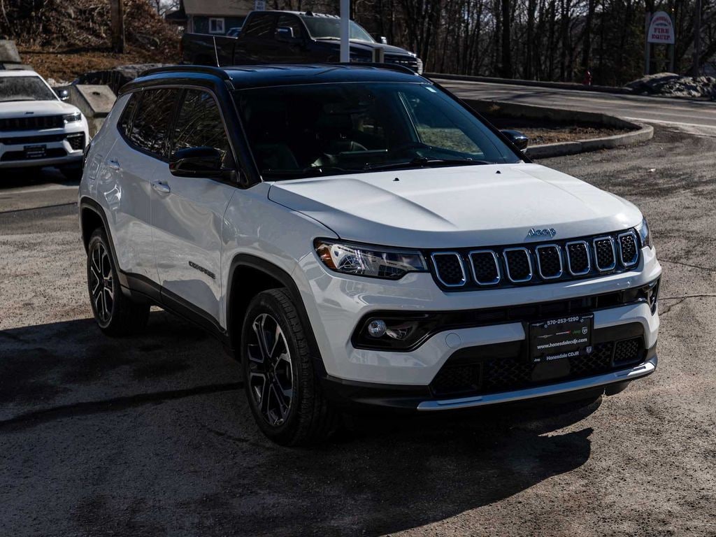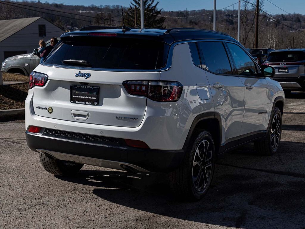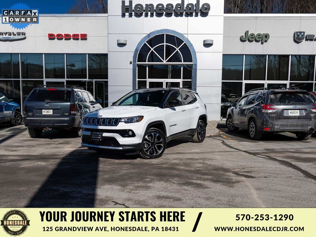 2023 Jeep Compass Limited CLEAN CARFAX, ONE OWNER, BLUE TOOTH, NEW PA STATE INSPECTION, FULLY RECONDITIONED, NAVIGATION, ALLOY WHEELS, LEATHER, BACK UP CAMERA, Compass Limited, 4D Sport Utility, 2.0L I4 DOHC, 8-Speed Automatic, 4WD, Bright White Clearcoat, Black w/Premium Leather Trimmed Bucket Seats, 10.1" Touchscreen Display, 4-Wheel Disc Brakes, 6 Speakers, ABS brakes, Adaptive Cruise Control, Apple CarPlay/Android Auto, Auto High-beam Headlights, Auto-dimming Rear-View mirror, Automatic temperature control, Brake assist, Dual front impact airbags, Dual front side impact airbags, Electronic Stability Control, Four wheel independent suspension, Front dual zone A/C, Front fog lights, Fully automatic headlights, GPS Navigation, Heated door mirrors, Heated front seats, Heated steering wheel, Illuminated entry, Knee airbag, Leather Shift Knob, Low tire pressure warning, Occupant sensing airbag, Overhead airbag, Panic alarm, ParkView Rear Back-Up Camera, Power door mirrors, Power driver seat, Premium Leather Trimmed Bucket Seats, Quick Order Package 29G, Radio: Uconnect 5 w/10.1" Display, Rear window defroster, Remote keyless entry, Security system, SiriusXM Radio Service, Telescoping steering wheel, Tilt steering wheel, Traction control, Turn signal indicator mirrors, Wheels: 18" x 7" Painted Diamond Cut Aluminum. 24/32 City/Highway MPG Odometer is 2294 miles below market average!