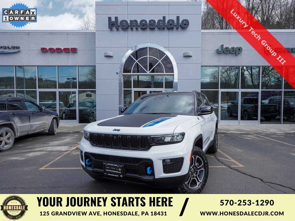 2023 Jeep Grand Cherokee Trailhawk 4xe Recent Arrival! CLEAN CARFAX, ONE OWNER, BLUE TOOTH, NEW PA STATE INSPECTION, FULLY RECONDITIONED, NAVIGATION, ALLOY WHEELS, LEATHER, BACK UP CAMERA, Grand Cherokee 4xe Trailhawk, 4D Sport Utility, 2.0L I4 DOHC, 8-Speed Automatic, 4WD, Bright White Clearcoat, Global Black w/Capri Leather/Suede Seats, Luxury Tech Group III, 10 Speakers, 2nd-Row Manual Window Shades, 4-Wheel Disc Brakes, ABS brakes, Adaptive Cruise Control, Adaptive suspension, AM/FM radio: SiriusXM with 360L, Anti-whiplash front head restraints, Audio memory, Auto High-beam Headlights, Auto-dimming door mirrors, Auto-leveling suspension, Automatic temperature control, Brake assist, Capri Leather/Suede Seats, Dual front impact airbags, Dual front side impact airbags, Electronic Stability Control, Four wheel independent suspension, Front Bucket Seats, Front dual zone A/C, Front fog lights, Fully automatic headlights, Garage door transmitter, Hands-Free Power Liftgate, Heated door mirrors, Heated front seats, Heated rear seats, Heated steering wheel, Heavy Duty Suspension, Illuminated entry, Knee airbag, Leather Shift Knob, Low tire pressure warning, Memory seat, Memory Steering Column, Navigation System, Occupant sensing airbag, Overhead airbag, Panic alarm, Passive Entry - Front/Rear Doors, Liftgate, Power door mirrors, Power driver seat, Power passenger seat, Power Tilt/Telescope Steering Column, Quick Order Package 27K, Radio: Uconnect 5 Nav w/10.1" Display, Rain Sensitive Windshield Wipers, Rear window defroster, Rearview Autodim Digital Display Mirror, Remote keyless entry, Security system, Traction control, Turn signal indicator mirrors, Two Tone Paint Group, Ventilated front seats, Wheels: 18" x 8" Machined Face/Painted Aluminum, Wireless Charging Pad.