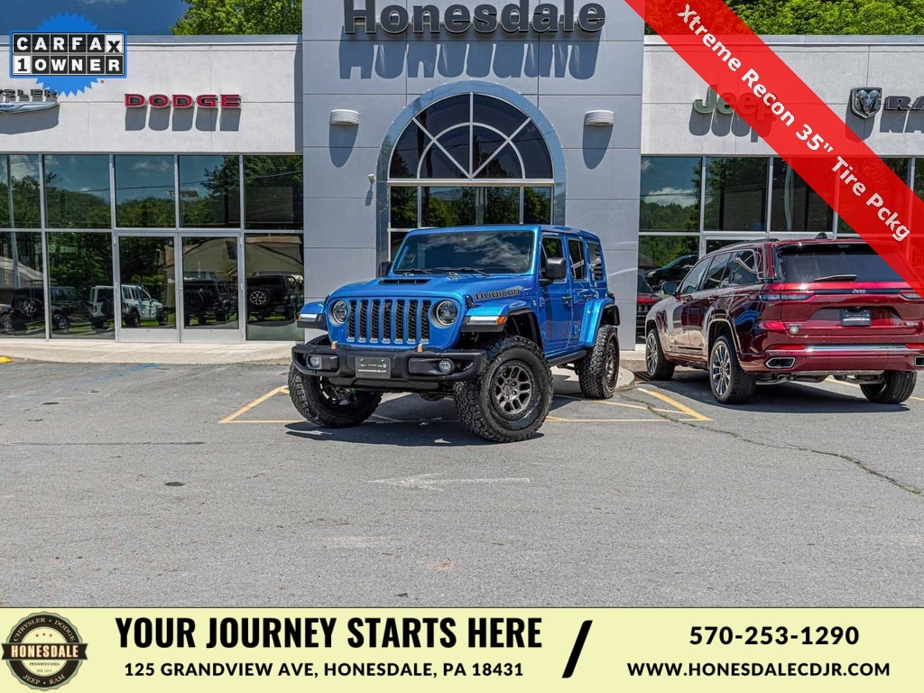 2023 Jeep Wrangler Rubicon 392 CLEAN CARFAX, ONE OWNER, BLUE TOOTH, NEW PA STATE INSPECTION, FULLY RECONDITIONED, NAVIGATION, ALLOY WHEELS, LEATHER, BACK UP CAMERA, Wrangler Rubicon 392, 4D Sport Utility, SRT HEMI 6.4L V8 MDS, 8-Speed Automatic, 4WD, Hydro Blue Pearlcoat, Black w/Leather Trimmed Bucket Seats, 35" Tire Rubicon 392 Suspension (DISC), 4-Wheel Disc Brakes, 7 & 4 Pin Wiring Harness, 9 Speakers, ABS brakes, AM/FM radio: SiriusXM, Apple CarPlay/Android Auto, Auto High-beam Headlights, Auto-dimming Rear-View mirror, Automatic temperature control, Brake assist, Class II Receiver Hitch, Corning Gorilla Glass, Cruise control, Dual front impact airbags, Dual front side impact airbags, Electronic Stability Control, Front dual zone A/C, Front fog lights, Fully automatic headlights, Garage door transmitter, Heated door mirrors, Heated front seats, Heated steering wheel, Illuminated entry, Integrated Off-Road Camera, Leather Shift Knob, Leather steering wheel, Leather Trimmed Bucket Seats, Low tire pressure warning, MOPAR Hinge-Gate Reinforcement, Navigation System, Occupant sensing airbag, ParkView Rear Back-Up Camera, Power door mirrors, Power Top Quarter Window Storage Bag, Quick Order Package 27X Rubicon 392, Radio: Uconnect 4C Nav w/8.4" Display, Rear Window Defroster, Rear Window Wiper/Washer, Remote keyless entry, Removable Rear Quarter Windows, Rubicon 392 Suspension, Security system, Sky 1-Touch Power Top, Telescoping steering wheel, Tilt steering wheel, Traction control, Trailer Tow Package, Wheel Flare Extensions, Wheels: 17" x 8" Bronze Beadlock Capable, Xtreme Recon 35" Tire Package (DISC).