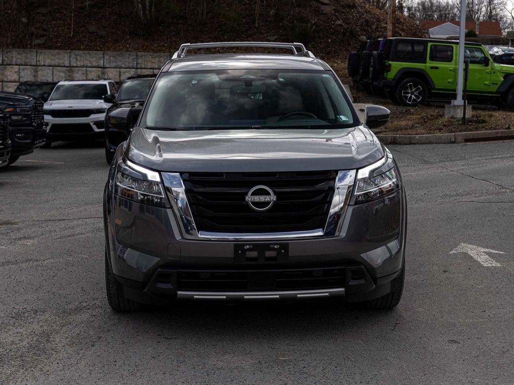 2023 Nissan Pathfinder SL CLEAN CARFAX, ONE OWNER, BLUE TOOTH, NEW PA STATE INSPECTION, FULLY RECONDITIONED, NAVIGATION, ALLOY WHEELS, LEATHER, BACK UP CAMERA, Intelligent Cruise Control w/Full Speed Range and Hold, Pathfinder SL, 4D Sport Utility, V6, 9-Speed Automatic, 4WD, Gun Metallic, Light Gray w/Leather Seating Surfaces, 18" Machined Alloy Wheels, 3rd row seats: bench, 4-Wheel Disc Brakes, 6 Speakers, ABS brakes, Auto High-beam Headlights, Auto-dimming Rear-View mirror, Automatic temperature control, Brake assist, Cross Bars, Dual front impact airbags, Dual front side impact airbags, Electronic Stability Control, Exterior Parking Camera Rear, Four wheel independent suspension, Front dual zone A/C, Fully automatic headlights, Garage door transmitter: HomeLink, Heated door mirrors, Heated Front Bucket Seats, Heated steering wheel, Illuminated entry, Knee airbag, Leather Seating Surfaces, Leather steering wheel, Low tire pressure warning, Navigation system: NissanConnect Navigation, NissanConnect w/Navigation & Services, Occupant sensing airbag, Overhead airbag, Panic alarm, Power door mirrors, Power driver seat, Power Liftgate, Power passenger seat, Radio: AM/FM Audio System, Rear air conditioning, Rear side impact airbag, Rear window defroster, Reclining 3rd row seat, Remote keyless entry, Security system, Speed-sensing steering, Telescoping steering wheel, Tilt steering wheel, Traction control, Turn signal indicator mirrors.