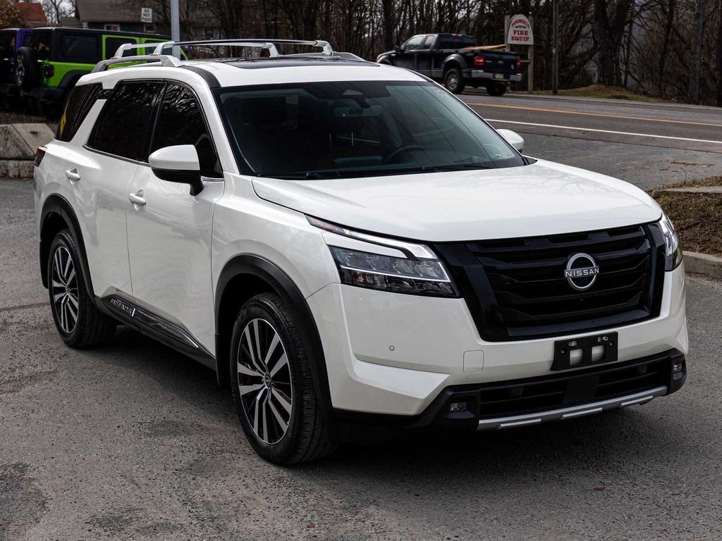 2024 Nissan Pathfinder Platinum Recent Arrival! CLEAN CARFAX, BLUE TOOTH, NEW PA STATE INSPECTION, FULLY RECONDITIONED, NAVIGATION, ALLOY WHEELS, PANORAMIC SUNROOF, LEATHER, BACK UP CAMERA, Intelligent Cruise Control w/Full Speed Range, Pathfinder Platinum, 4D Sport Utility, 3.5L V6 DOHC, 9-Speed Automatic, 4WD, Pearl White Tricoat, Chestnut w/Semi-Aniline Leather-Appointed Seating Surfaces, Black Appearance Package, Platinum Captain Chairs Package, 13 Speakers, 2nd-Row Captain Chairs, 2nd-Row Rear Headrest, 4-Wheel Disc Brakes, ABS brakes, AM/FM radio: SiriusXM, Auto High-beam Headlights, Auto tilt-away steering wheel, Auto-dimming Rear-View mirror, Automatic temperature control, Black Grille (K10), Black Liftgate Emblems, Bose Premium Audio System, Brake assist, Cargo Area Protector, Cargo Net, Cargo Package, Dual front impact airbags, Dual front side impact airbags, Electronic Stability Control, Exterior Parking Camera Rear, First Aid Kit, Four wheel independent suspension, Front dual zone A/C, Fully automatic headlights, Garage door transmitter: HomeLink, Heads-Up Display, Heated & Cooled Front Bucket Seats, Heated door mirrors, Heated rear seats, Heated steering wheel, Illuminated entry, Knee airbag, Leather steering wheel, LED Fog Lamps, Low tire pressure warning, Memory seat, Navigation system: NissanConnect with Navigation and Services, NissanConnect featuring Apple CarPlay and Android Auto, NissanConnect w/Navigation & Services, Occupant sensing airbag, Overhead airbag, Panic alarm, Power door mirrors, Power driver seat, Power Liftgate, Power passenger seat, Radio: AM/FM Audio System, Rear air conditioning, Rear side impact airbag, Rear window defroster, Reclining 3rd row seat, Remote keyless entry, Security system, Semi-Aniline Leather-Appointed Seating Surfaces, Speed-sensing steering, Steering wheel memory, Telescoping steering wheel, Traction control, Turn signal indicator mirrors, Wheels: 20" x 8J Machined Alloy.