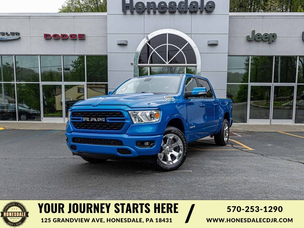 2022 Ram 1500 Big Horn/Lone Star CLEAN CARFAX, ONE OWNER, BLUE TOOTH, NEW PA STATE INSPECTION, FULLY RECONDITIONED, NAVIGATION, ALLOY WHEELS, BACK UP CAMERA, 1500 Big Horn/Lone Star, 4D Crew Cab, 3.6L V6 24V VVT, 8-Speed Automatic, 4WD, Hydro Blue Pearlcoat, Black w/Deluxe Cloth Bucket Seats, 2nd Row In Floor Storage Bins, 3 Rear Seat Head Restraints, 4 Way Front Headrests, 4-Wheel Disc Brakes, 4G LTE Wi-Fi Hot Spot, 6 Speakers, 8.4" Touchscreen Display, ABS brakes, Air Conditioning ATC w/Dual Zone Control, All Plant-Installed Decals, All R1 High Radios, All Radio Equipped Vehicles, Apple CarPlay, Auto-Dimming Exterior Driver Mirror, Auto-Dimming Rear-View Mirror, Big Horn Badge, Big Horn Level 1 Equipment Group, Black Exterior Mirrors, Black Interior Accents, Black Premium Power Mirrors, Bluetooth Handsfree Phone & Audio, Body Color Exterior Mirrors, Body Color Front Bumper, Body Color Premium Power Mirrors, Body Color Rear Bumper w/Step Pads, Brake assist, Bucket Seats, Class IV Receiver Hitch, Cluster 7.0" TFT Color Display, Connected Travel & Traffic Services, Connectivity - US/Canada, Convex Wide-Angle Mirror Insert, Cruise control, Delete LED Lamp - Floor Console Bin, Deluxe Cloth Bucket Seats, Disassociated Touchscreen Display, Dual front impact airbags, Dual front side impact airbags, Electronic Stability Control, Exterior Mirrors Courtesy Lamps, Exterior Mirrors w/Heating Element, Exterior Mirrors w/Supplemental Signals, Front fog lights, Front Seat Back Map Pockets, Front wheel independent suspension, Full Length Floor Console, Fully automatic headlights, Global Telematics Box Module (TBM), Glove Box Lamp, Google Android Auto, GPS Antenna Input, GPS Navigation, HD Radio, Heated door mirrors, Illuminated entry, Integrated Center Stack Radio, Integrated Voice Command w/Bluetooth, Leather steering wheel, Low tire pressure warning, Manual Adjust 4-Way Front Passenger Seat, Occupant sensing airbag, Overhead airbag, ParkView Rear Back-Up Camera, Power 2-Way Driver Lumbar Adjust, Power 8-Way Driver Seat, Power Adjustable Pedals, Power door mirrors, Power-Folding Mirrors, Quick Order Package 23Z Big Horn, Radio: Uconnect 5 Nav w/8.4" Display, Rear 60/40 Folding Seat, Rear Center Armrest, Rear Dome w/On/Off Switch Lamp, Rear Power Sliding Window, Rear Wheelhouse Liners, Rear Window Defroster, Remote keyless entry, Remote Start System, SiriusXM Radio Service, SiriusXM Satellite Radio, SiriusXM w/360L, Sport Appearance Package, Sport Decal, Sun Visors w/Illuminated Vanity Mirrors, Telescoping steering wheel, Traction control, Universal Garage Door Opener, USB Host Flip, Wheels: 20" x 9" Aluminum Chrome Clad (WRK).