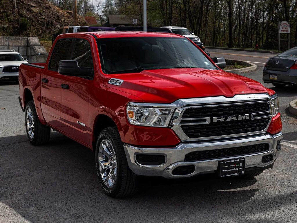 2023 Ram 1500 Big Horn/Lone Star Recent Arrival! CLEAN CARFAX, ONE OWNER, BLUE TOOTH, NEW PA STATE INSPECTION, FULLY RECONDITIONED, NAVIGATION, ALLOY WHEELS, BACK UP CAMERA, 1500 Big Horn/Lone Star, 4D Crew Cab, 3.6L V6 24V VVT, 8-Speed Automatic, 4WD, Flame Red Clearcoat, Diesel Gray/Black w/Cloth Bench Seat, 4-Wheel Disc Brakes, 6 Speakers, ABS brakes, Air Conditioning, Big Horn Badge, Brake assist, Cruise control, Dual front impact airbags, Dual front side impact airbags, Electronic Stability Control, Front wheel independent suspension, Fully automatic headlights, Heated door mirrors, Illuminated entry, Integrated Voice Command w/Bluetooth, Leather steering wheel, Low tire pressure warning, Occupant sensing airbag, Overhead airbag, Panic alarm, ParkView Rear Back-Up Camera, Power door mirrors, Quick Order Package 23Z Big Horn, Radio: Uconnect 3 w/5" Display, Remote keyless entry, Remote Start System, Telescoping steering wheel, Tilt steering wheel, Traction control, Wheels: 20" x 9" Aluminum Chrome Clad (WRK). Odometer is 2653 miles below market average!