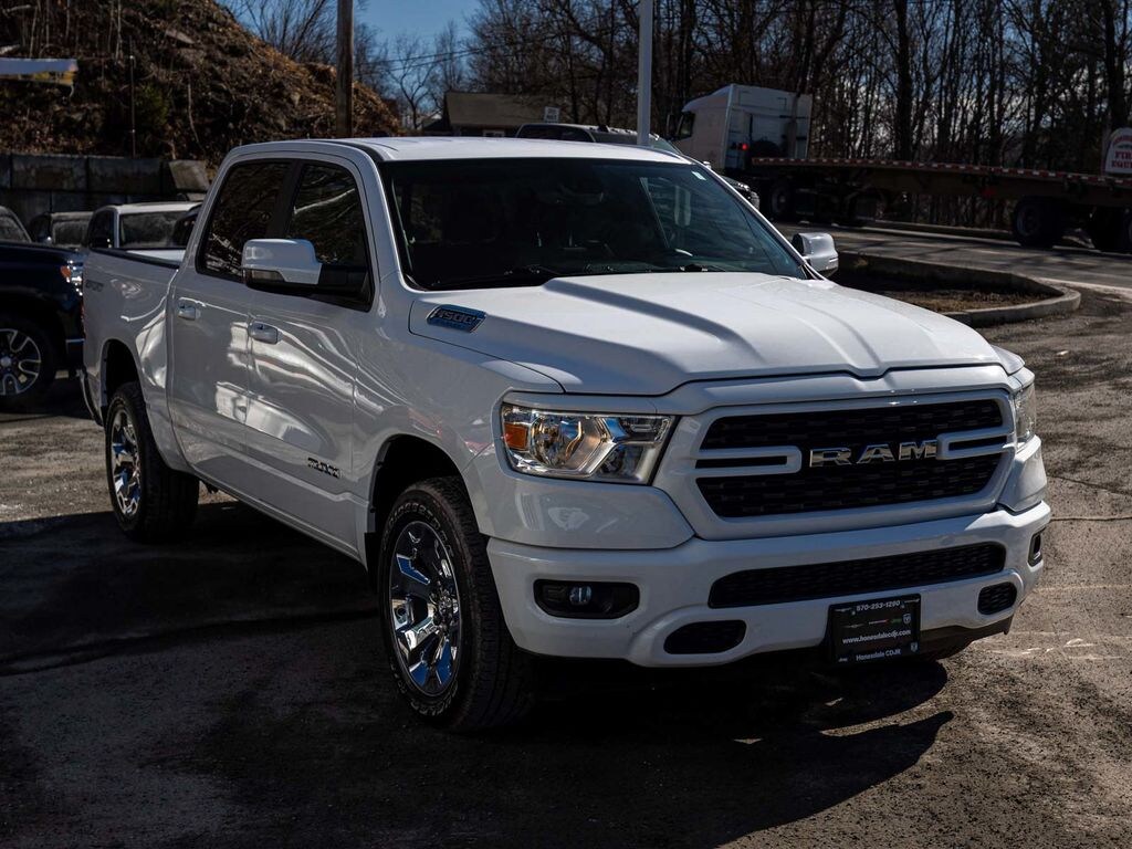 2023 Ram 1500 Big Horn/Lone Star ONE OWNER, BLUE TOOTH, NEW PA STATE INSPECTION, FULLY RECONDITIONED, NAVIGATION, ALLOY WHEELS, BACK UP CAMERA, 1500 Big Horn/Lone Star, 4D Crew Cab, 3.6L V6 24V VVT, 8-Speed Automatic, 4WD, Bright White Clearcoat, Black w/Deluxe Cloth Bucket Seats, 2nd Row In Floor Storage Bins, 3 Rear Seat Head Restraints, 4 Way Front Headrests, 4-Wheel Disc Brakes, 4G LTE Wi-Fi Hot Spot, 6 Speakers, 8.4" Touchscreen Display, ABS brakes, Air Conditioning, Apple CarPlay, Auto-Dimming Exterior Driver Mirror, Auto-Dimming Rear-View Mirror, Big Horn Badge, Big Horn Level 1 Equipment Group, Black Interior Accents, Bluetooth Handsfree Phone & Audio, Body Color Door Handles, Body Color Front Bumper, Body Color Premium Power Mirrors, Body Color Rear Bumper w/Step Pads, Brake assist, Center Console Parts Module, Class IV Receiver Hitch, Connectivity - US/Canada, Convex Wide-Angle Exterior Mirror Insert, Cruise control, Deluxe Cloth Bucket Seats, Dual front impact airbags, Dual front side impact airbags, Electric Shift-On-Demand Transfer Case, Electronic Stability Control, Exterior Mirrors Courtesy Lamps, Exterior Mirrors w/Heating Element, Exterior Mirrors w/Supplemental Signals, Front Fog Lamps, Front wheel independent suspension, Full Length Floor Console, Fully automatic headlights, Glove Box Lamp, Google Android Auto, GPS Antenna Input, GPS Navigation, Heated Front Seats, Heated Steering Wheel, Illuminated entry, Integrated Center Stack Radio, Integrated Voice Command w/Bluetooth, Leather steering wheel, Low tire pressure warning, Occupant sensing airbag, Overhead airbag, Panic alarm, ParkView Rear Back-Up Camera, Passenger Sun Visor w/Illuminated Mirror, Power 2-Way Driver Lumbar Adjust, Power 8-Way Driver Seat, Power-Folding Mirrors, Quick Order Package 23Z Big Horn, Radio: Uconnect 5 W w/8.4" Display, RAM Grille Badge - Chrome, Rear 60/40 Folding Seat, Rear Center Armrest, Rear Dome w/On/Off Switch Lamp, Rear Power Sliding Window, Rear Window Defroster, Remote keyless entry, Remote Start System, SiriusXM Satellite Radio, Sport Appearance Package, Sport Decal, Telescoping steering wheel, Tilt steering wheel, Traction control, USB Host Flip, Wheels: 20" x 9" Aluminum Chrome Clad (WRK).